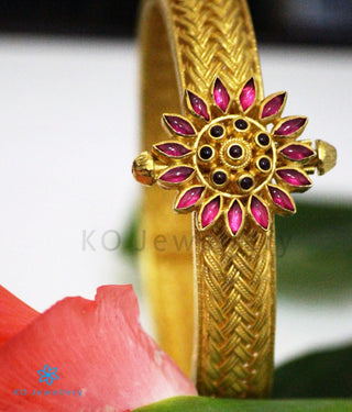 The Aryahi Silver Lakshmi Coin Openable Kada Bracelet (Red/Size 2.2/2.4/2.6/2.8)