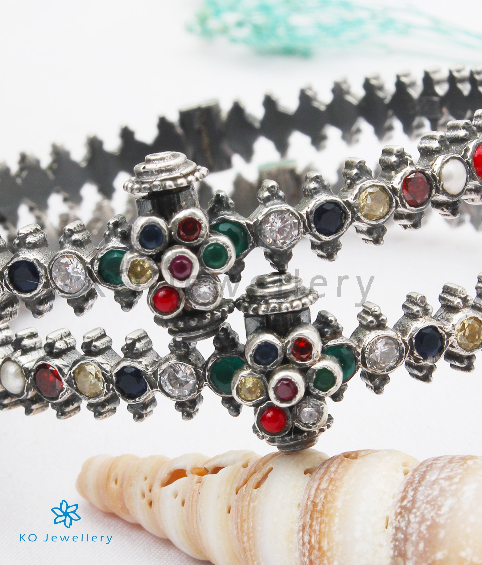 The Ambara Silver Navratna Bracelet(Oxidised/Size 2.2/2.4/2.6/2.8)