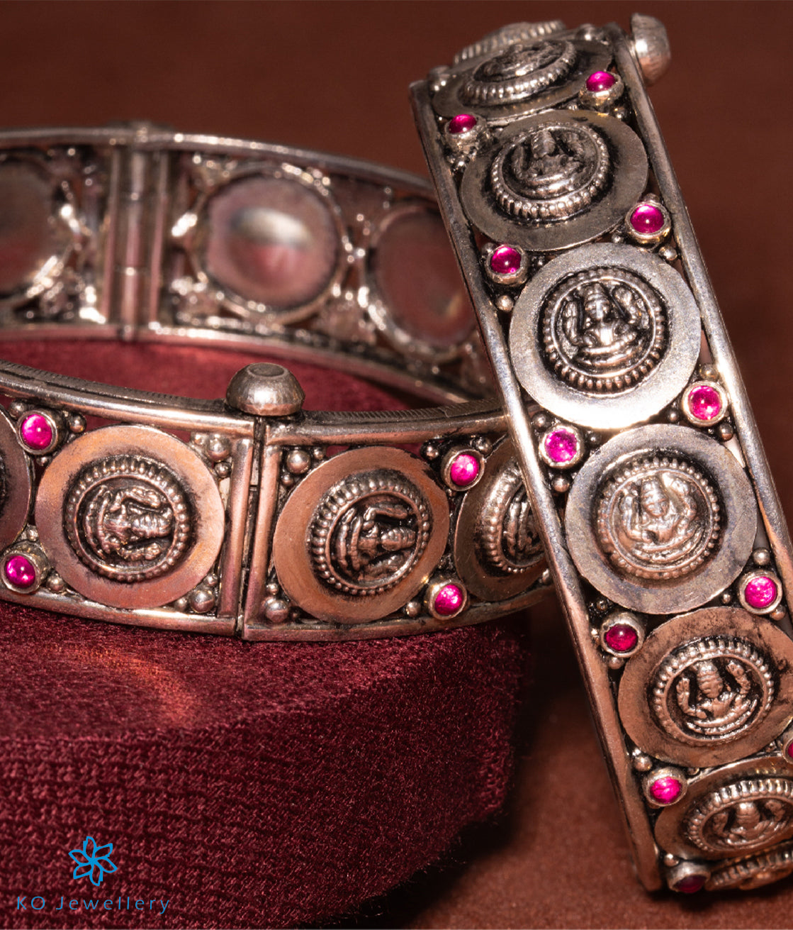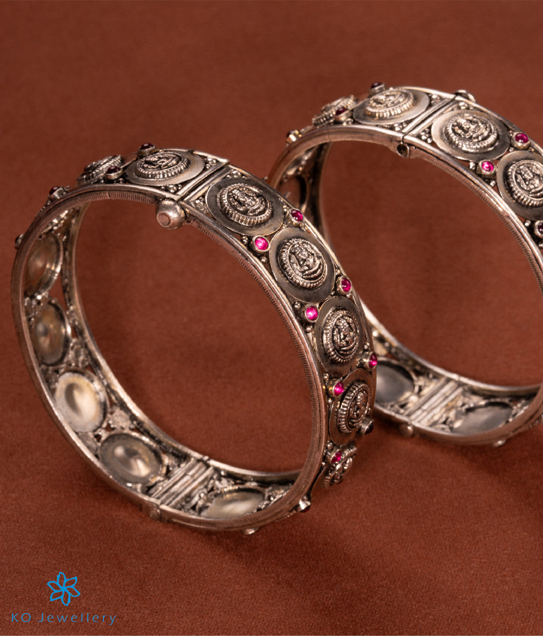 The Aryahi Silver Lakshmi Coin Openable Kada Bracelet - Buy authentic temple jewellery online - KO Jewellery