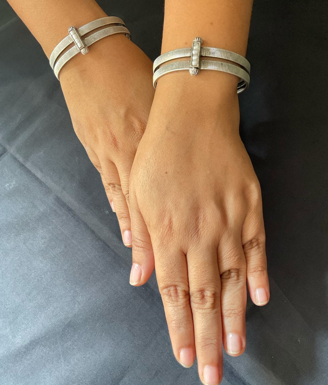 Introducing our Stavya 925 Pure Silver Kada, a KO Original design, meticulously handcrafted at our workshop. Each piece undergoes at least 5-6 distinct processes, with a skilled artisan dedicated to each stage, ensuring unparalleled quality and precision.