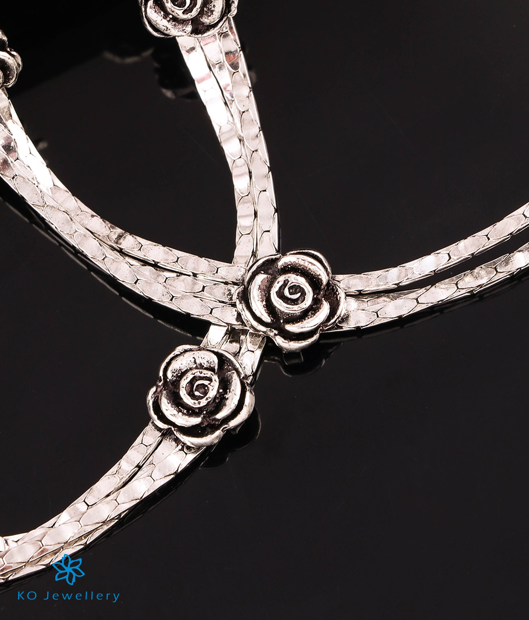 The Rose Silver Floral Antique Anklets