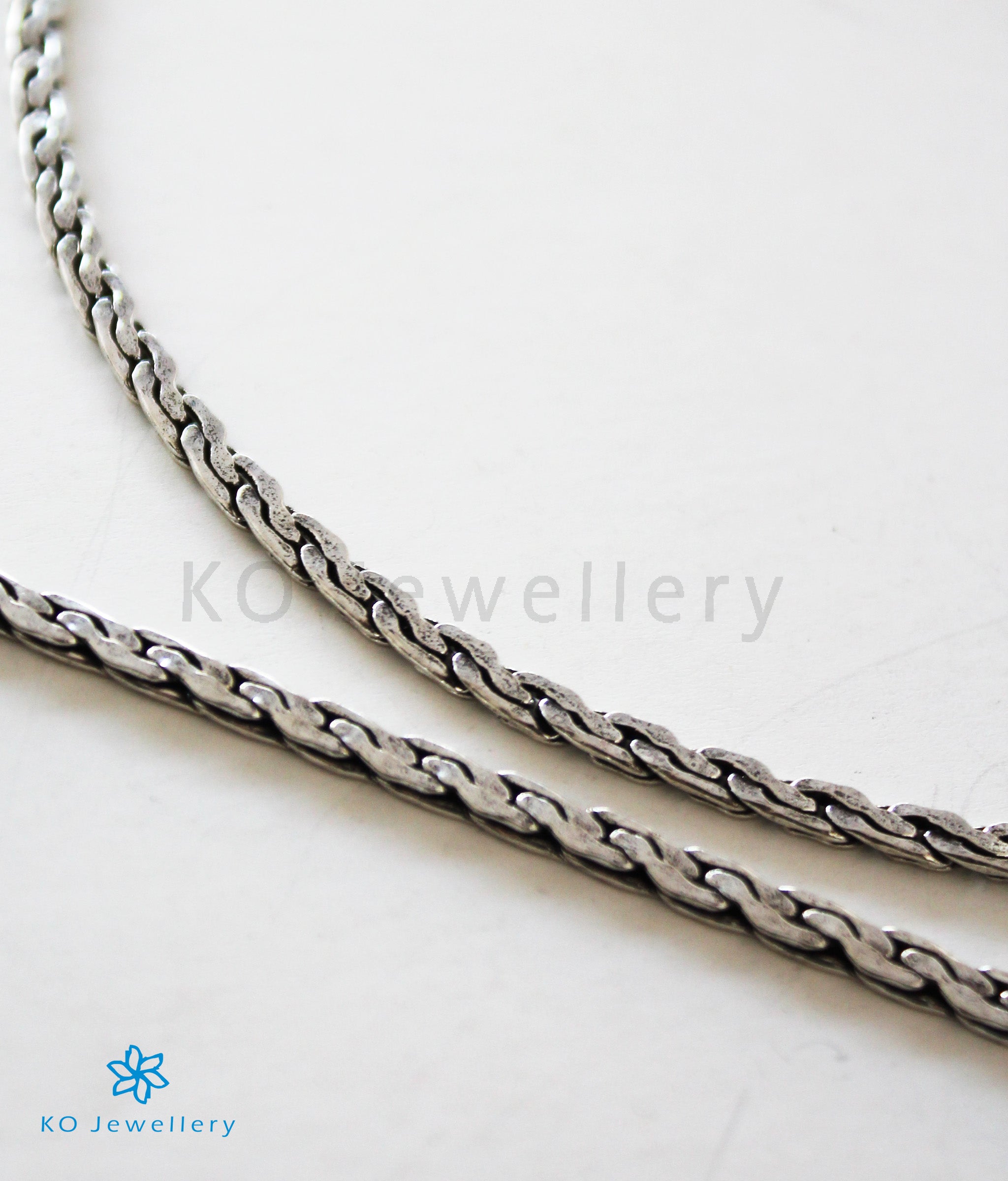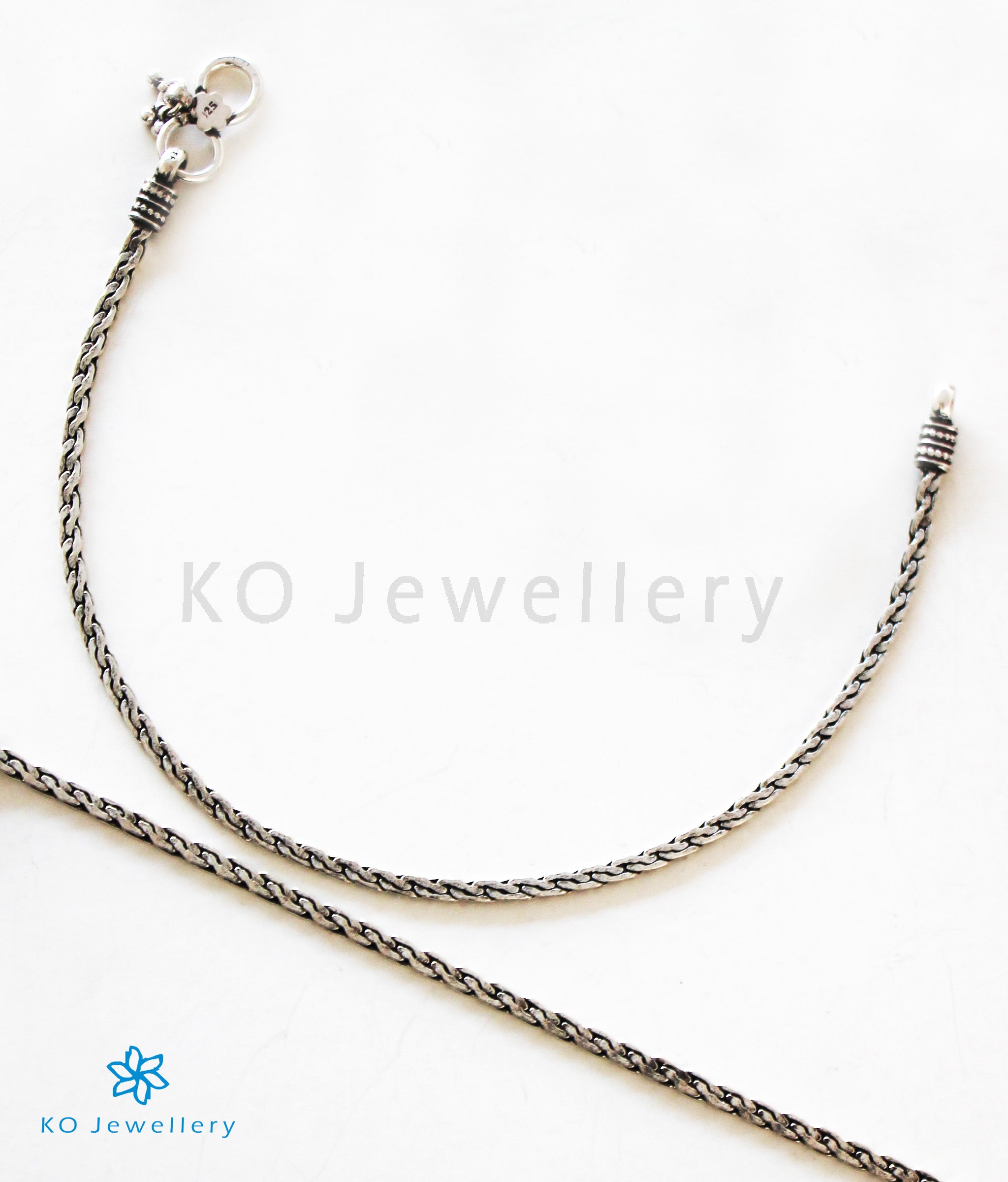 Handcrafted sterling silver (92.5%) anklets with an intricate design this pair has been oxidised .Crafted in a simple and no-fuss design, this pair of anklets is great for everyday wear.