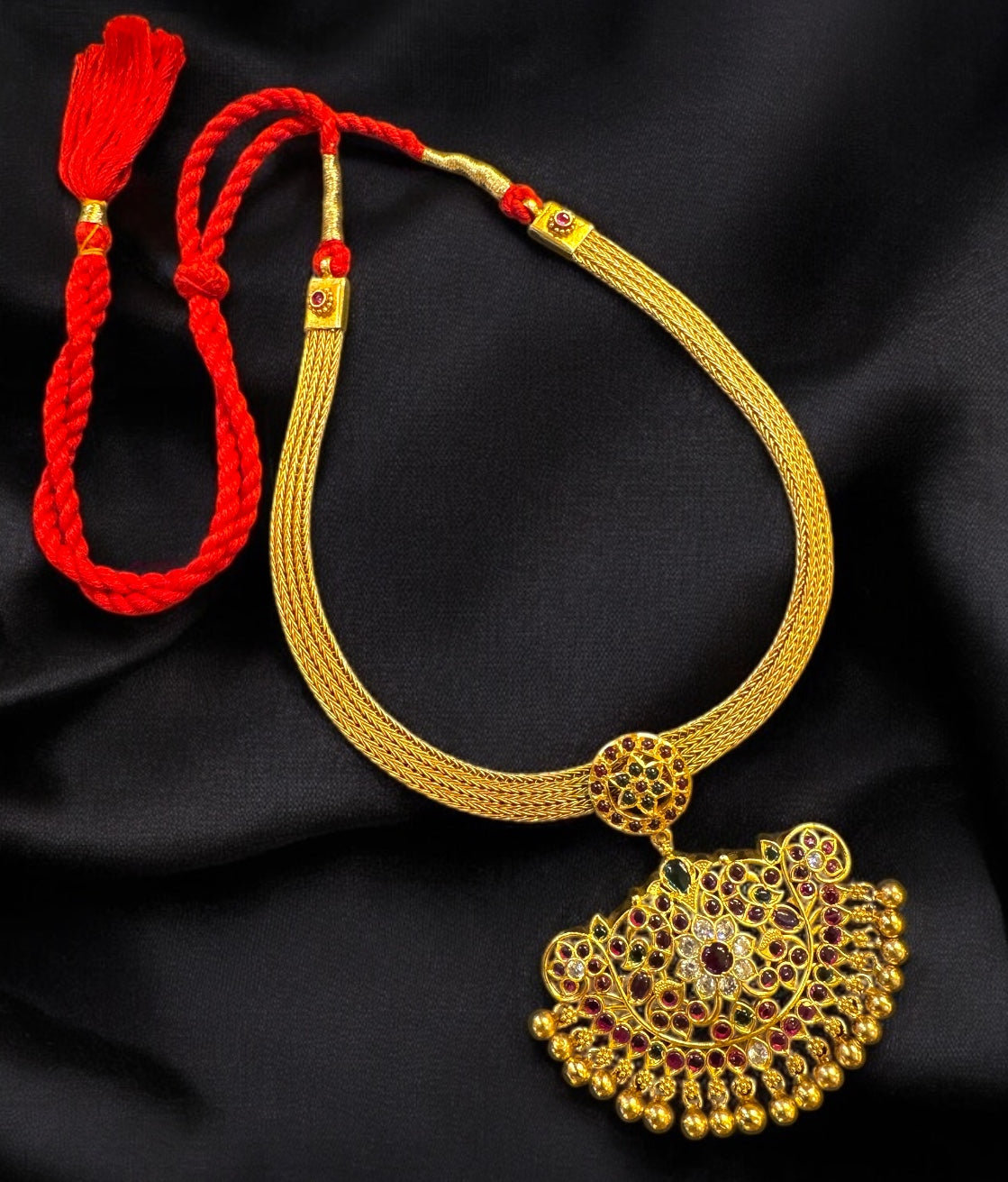 Gemstones used: kempu stone (also known as spinel or Zircon)
