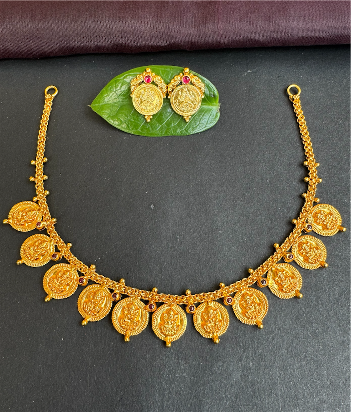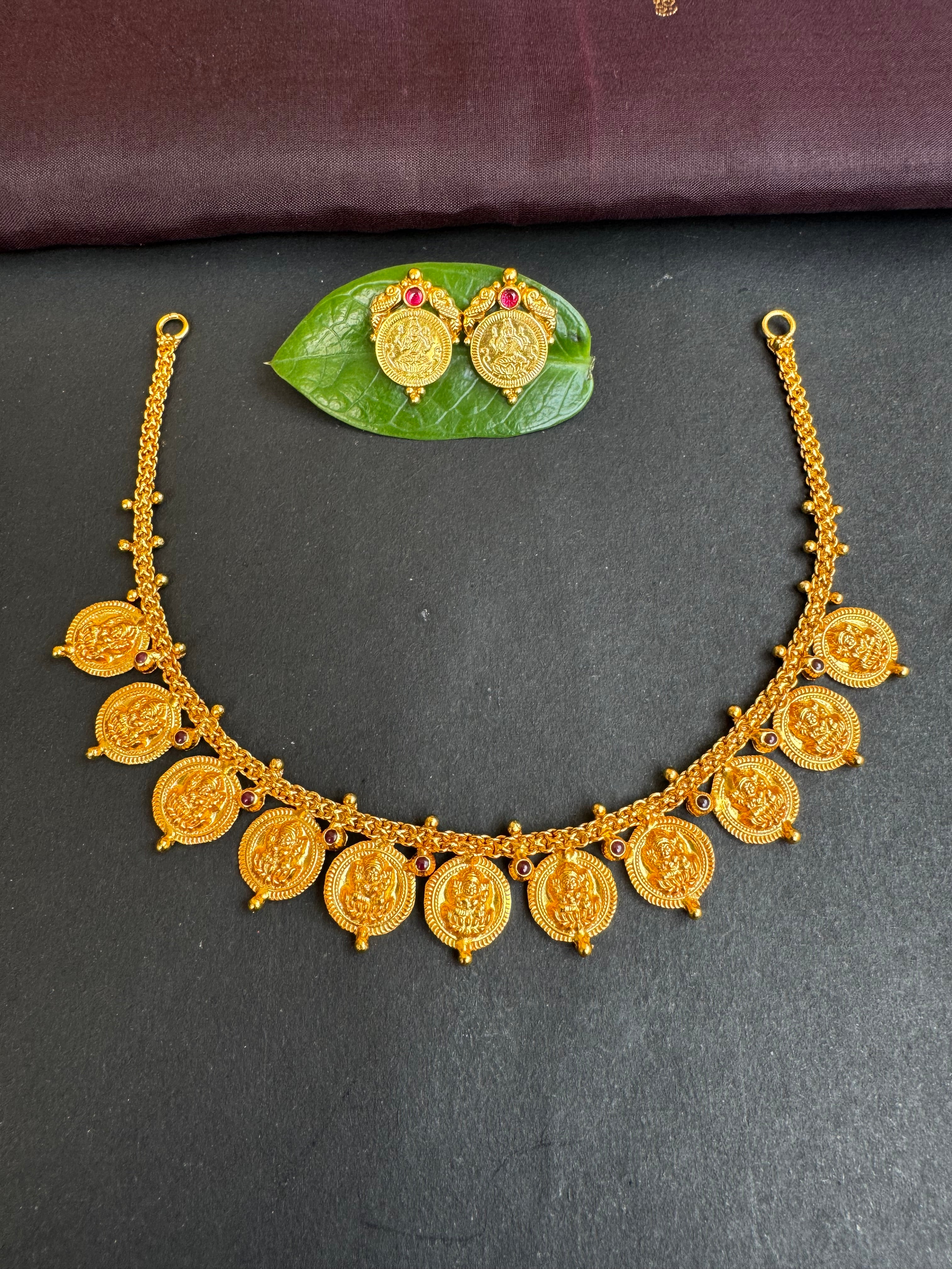 The Ishvani Silver Lakshmi Kasumala Necklace & Earrings- Buy Silver necklace from trusted jeweller , Certified gauranteed Silver necklace (92.5%) - KO Jewellery