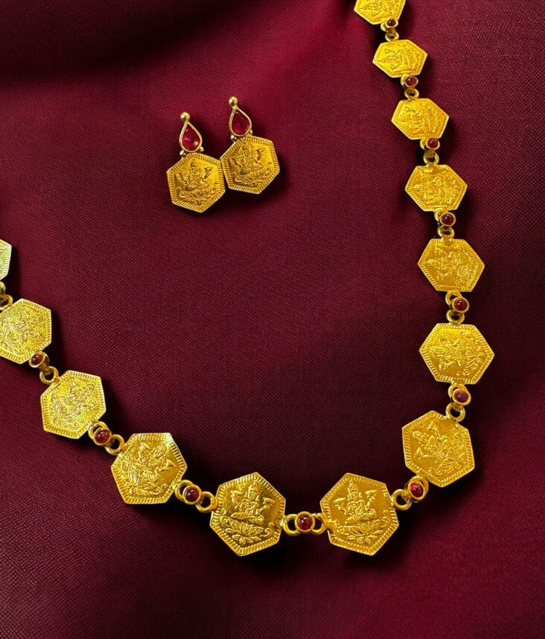 Lightweight Kasu Mala Necklace with Goddess Lakshmi motif from our Antique Temple Jewellery Collection