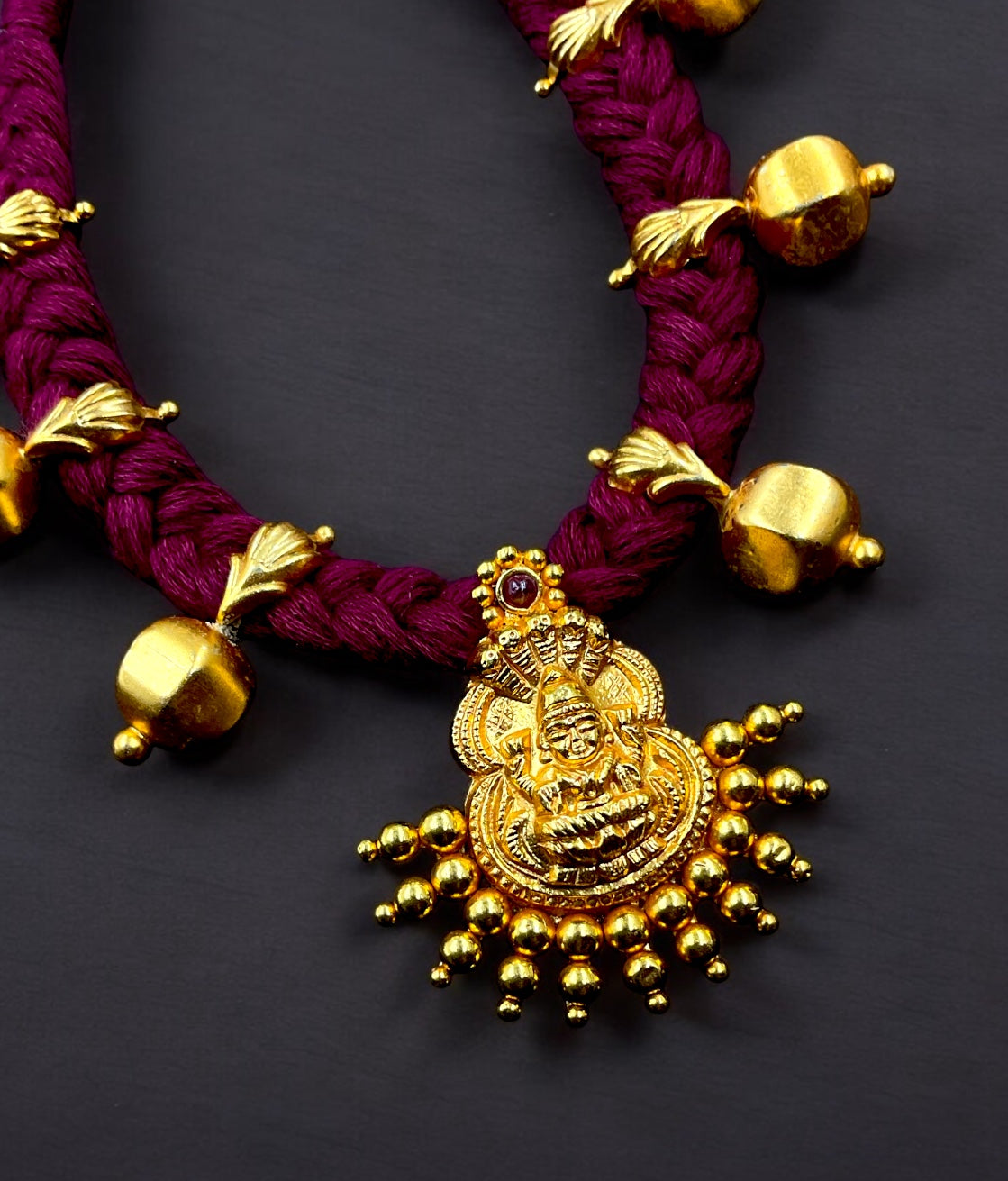 Elevate your style with our 925 Pure Silver Beads and Thread Necklace, a stunning blend of tradition and contemporary elegance. This handmade piece features a central Godess Lakshmi pendant with beautiful silver beads, each adorned with intricate accents that reflect the skill and artistry of our craftsmen. These unique beads, are thoughtfully handwoven in cotton thread to add depth and texture to the design.