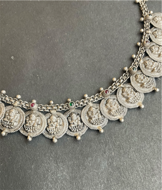 The Pratha Antique Silver Lakshmi Kasumala Coin Necklace/Waistbelt (Pearl)