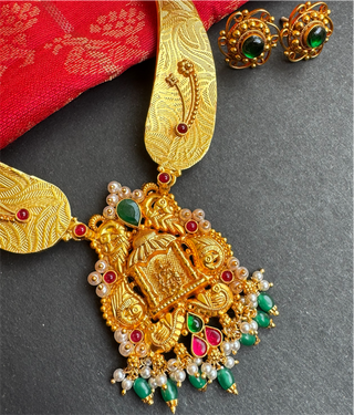 The Pratha Antique Silver Lakshmi Kasumala Coin Necklace/Waistbelt (Green)