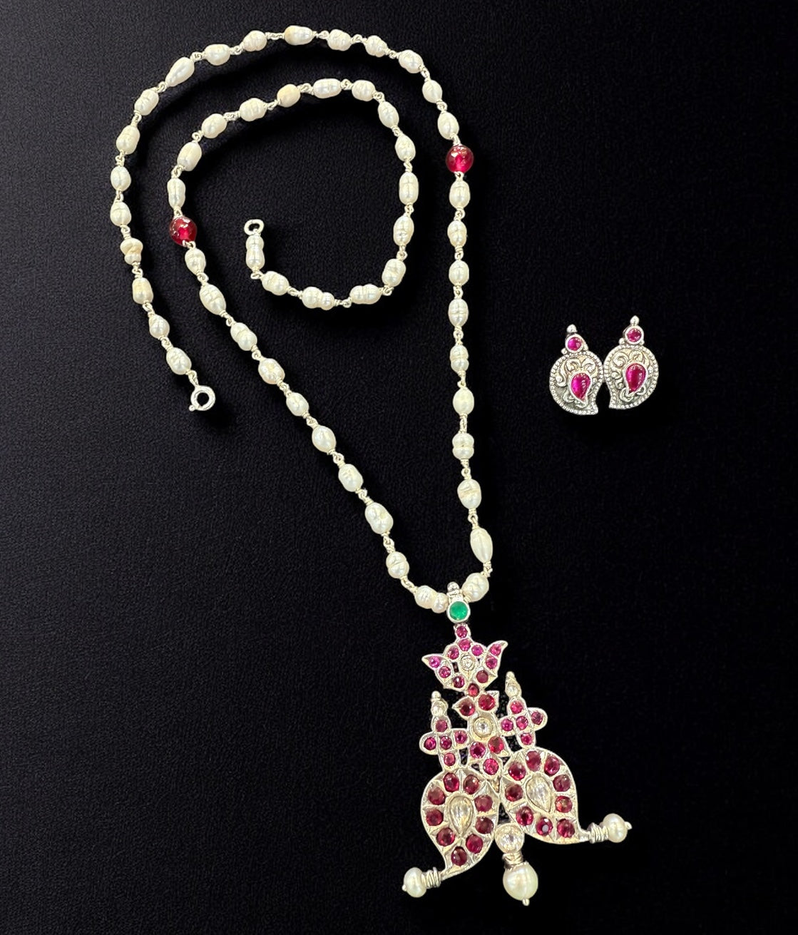 The Amrapushpa Silver Pearl Necklace & Earrings