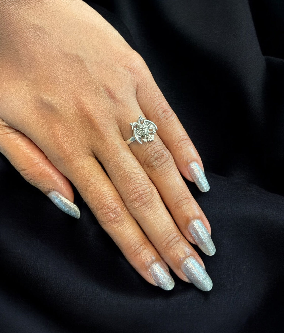 The Dvirupa Silver Gandaberunda Adjustable Finger Ring- Buy Exclusive Handmade Silver Finger rings - KO Jewellery