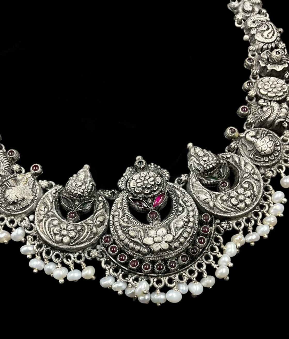 The Niyati Silver Nakshi Necklace (Oxidised)