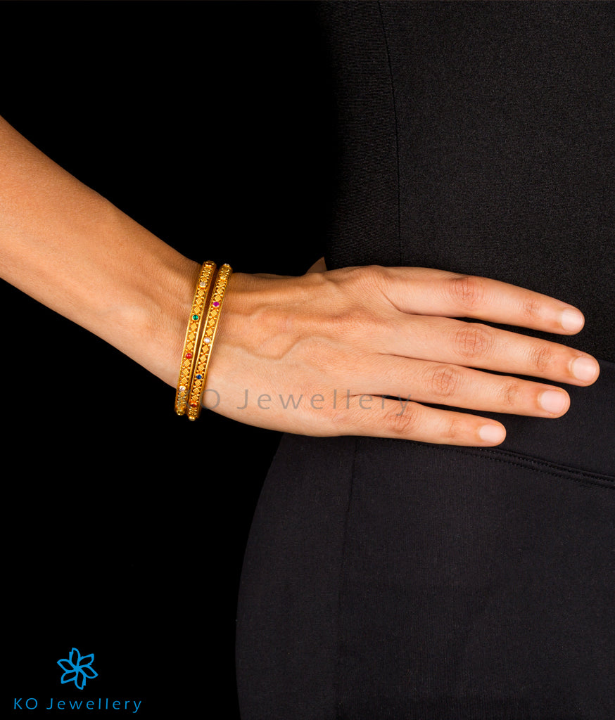The Reyna Silver Navratna Bangle -Single (Size 2.2/2.4/2.6/2.8)