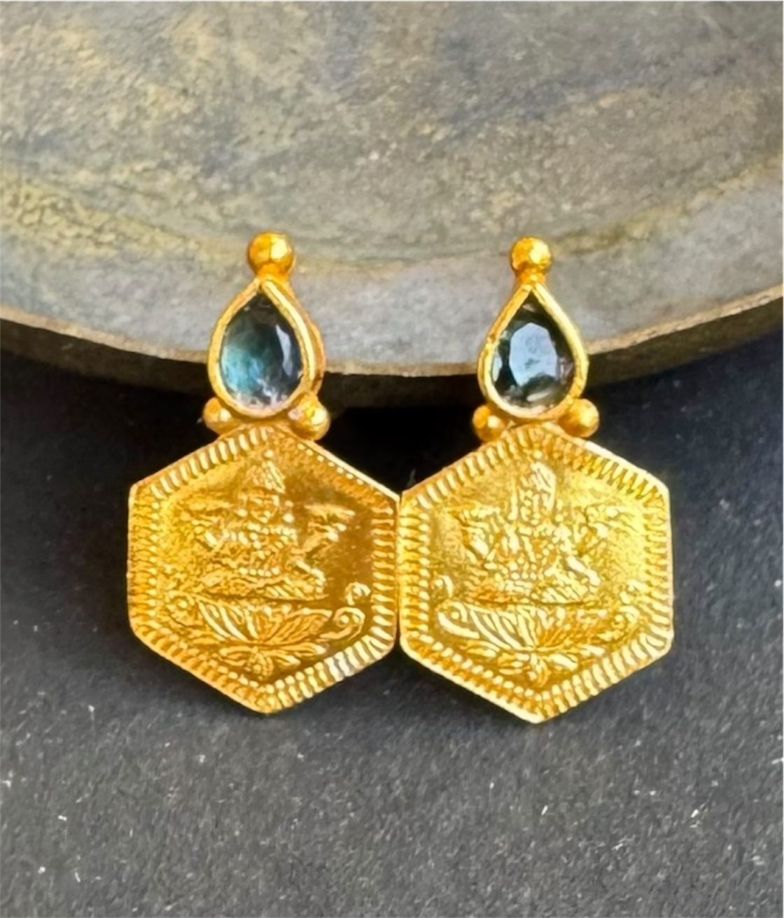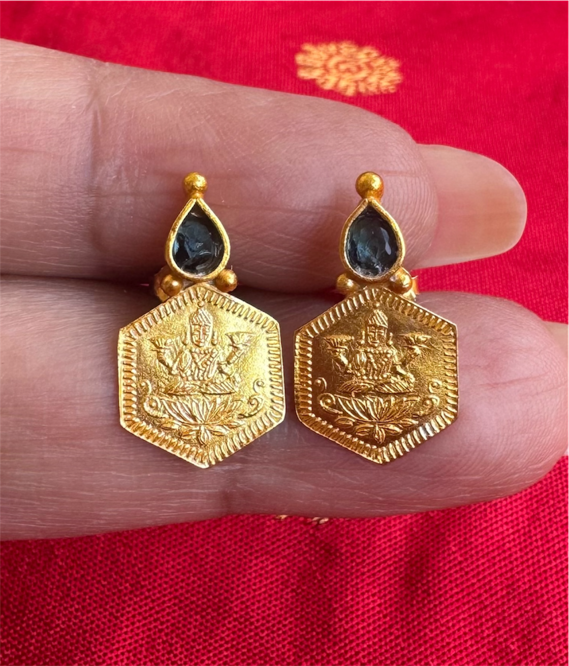The Sadara Silver Kasu Lakshmi Earstuds (Blue)