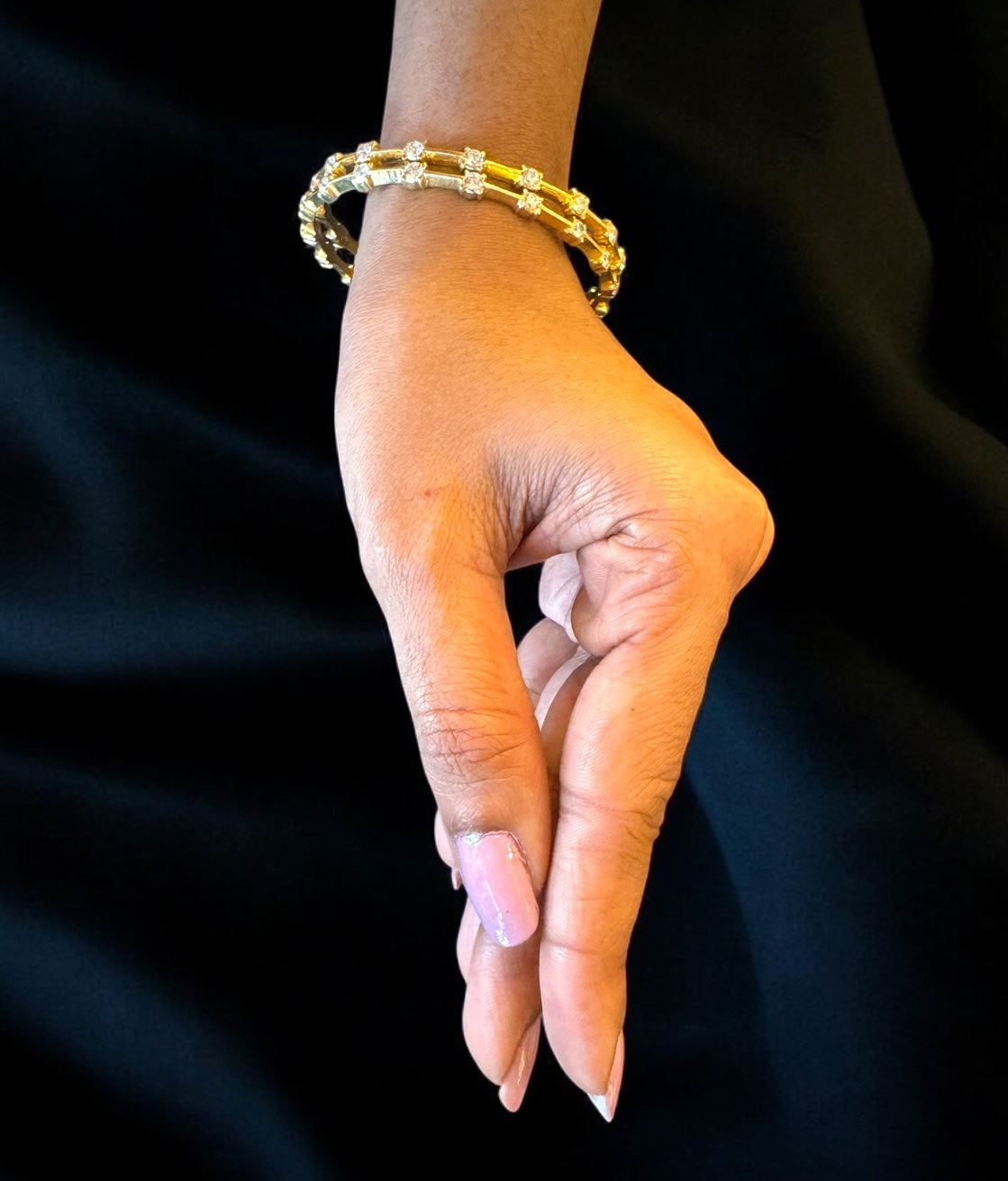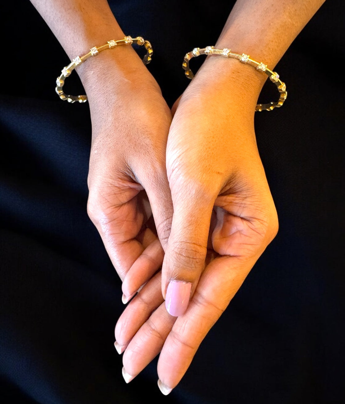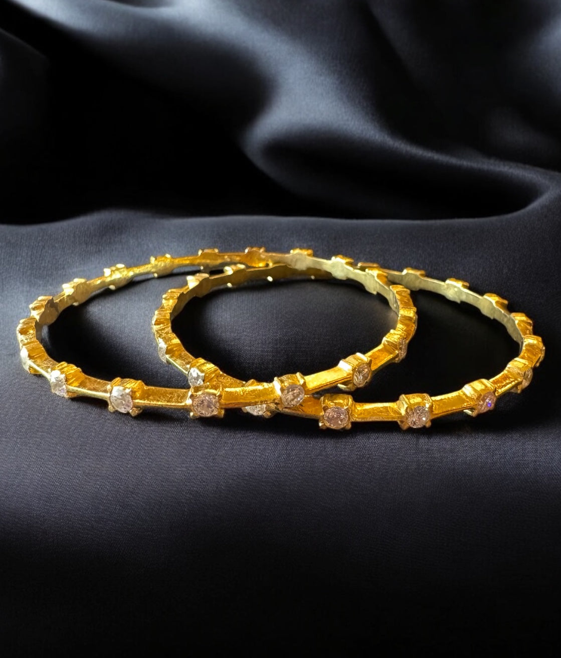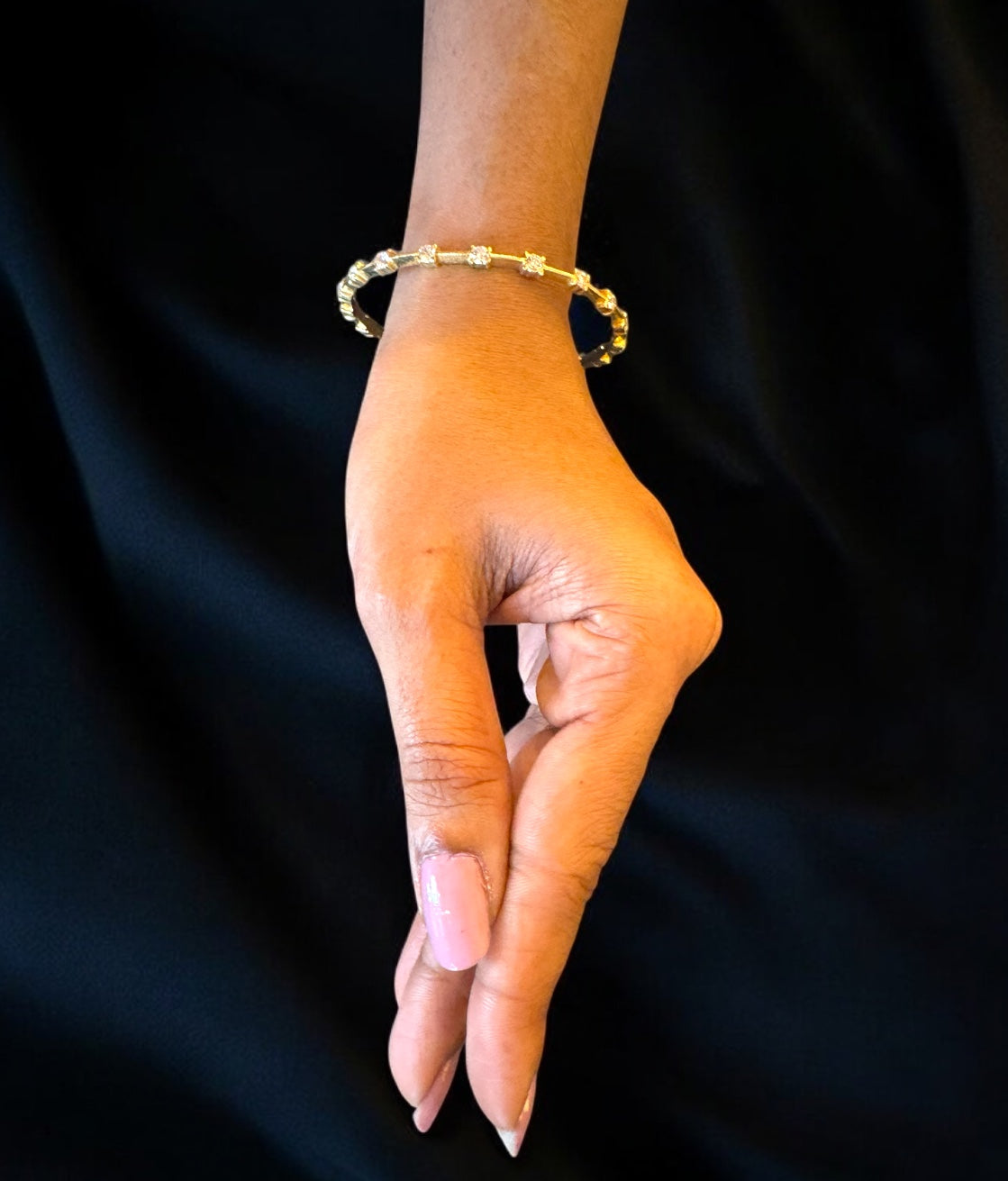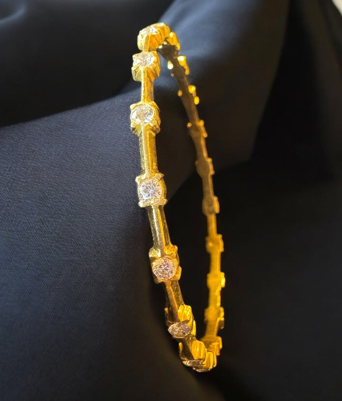 Handcrafted in pure 92.5% Sterling Silver and luxuriously dipped in 24K gold through a meticulous process, this bangle offers a finish so refined, it's virtually indistinguishable from real gold. The design is flawless—each curve, each setting speaks of craftsmanship that is both rare and breathtaking.