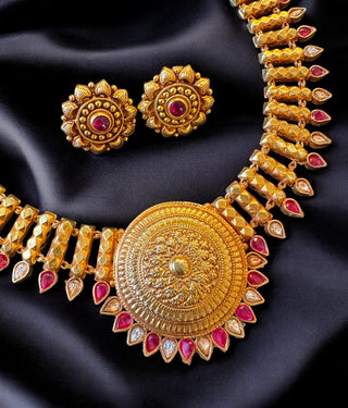 The Atyukti Silver Gandaberunda Pearl Necklace & Earrings (Oxidised)