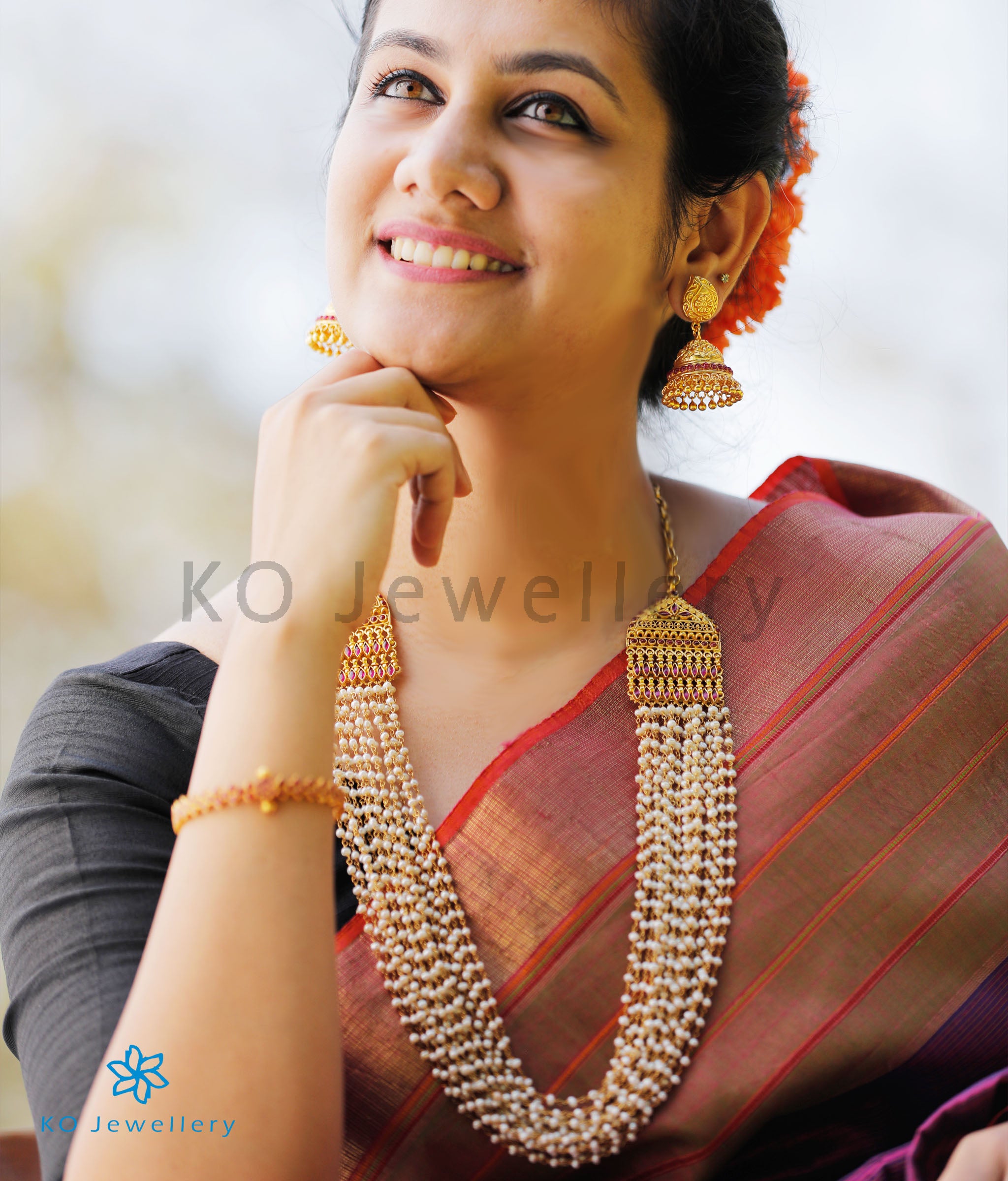 The Katha Silver Layered Pearl Necklace - Antique South Indian Temple Jewellery - KO Jewellery