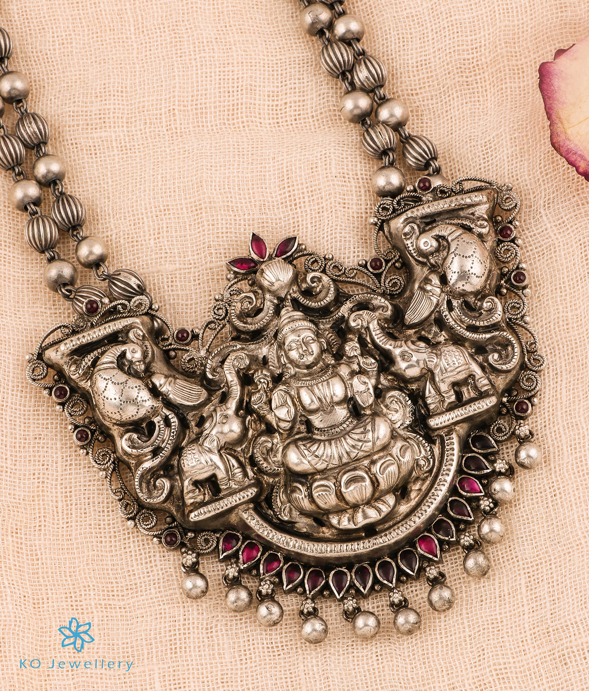 The Padmalaya Lakshmi Silver Nakkasi Beads Necklace