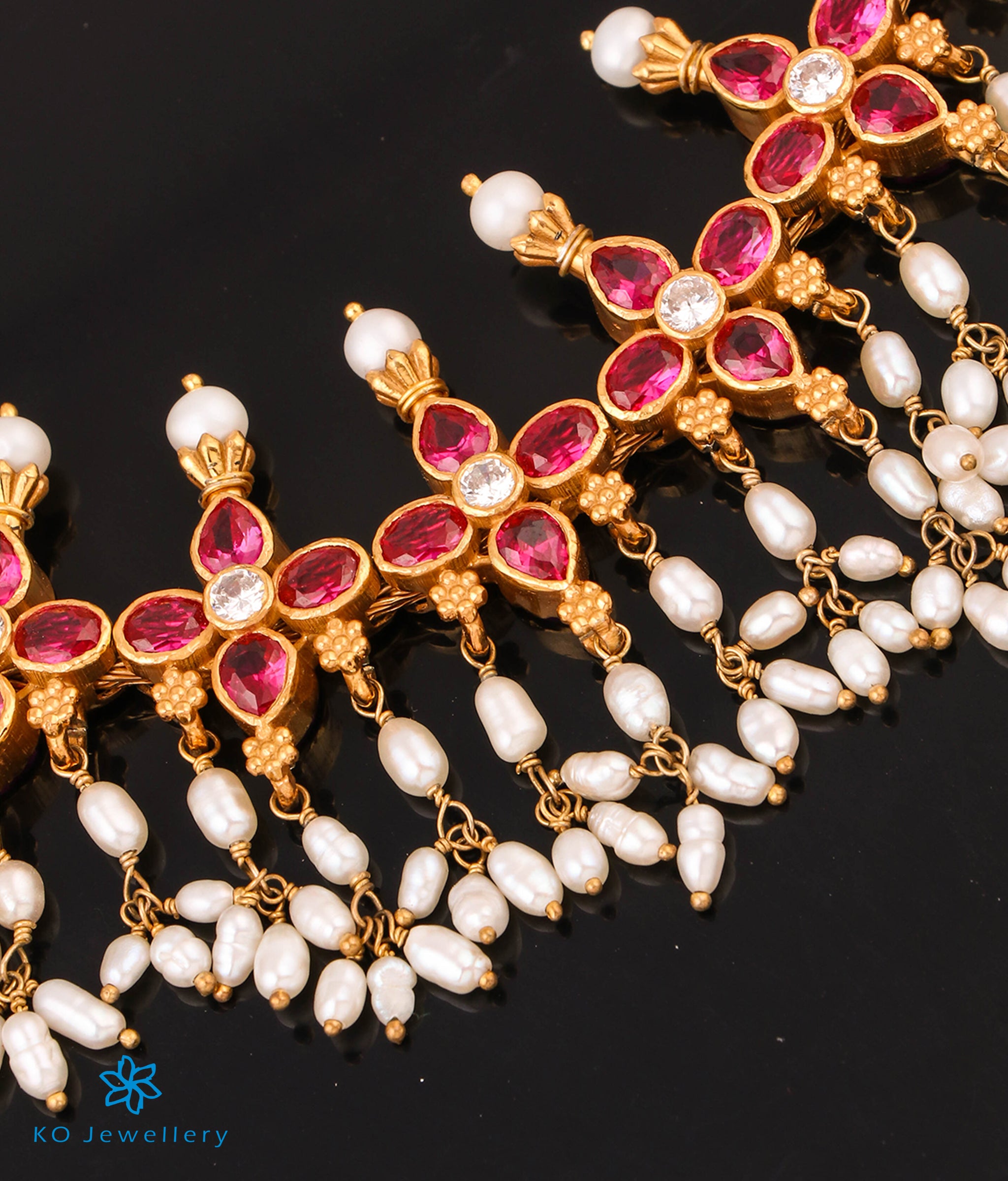 The Shriya Silver Pearl Necklace (Red)- Buy KEMP NECKLACE in Pure Silver from trusted jeweller - KO Jewellery