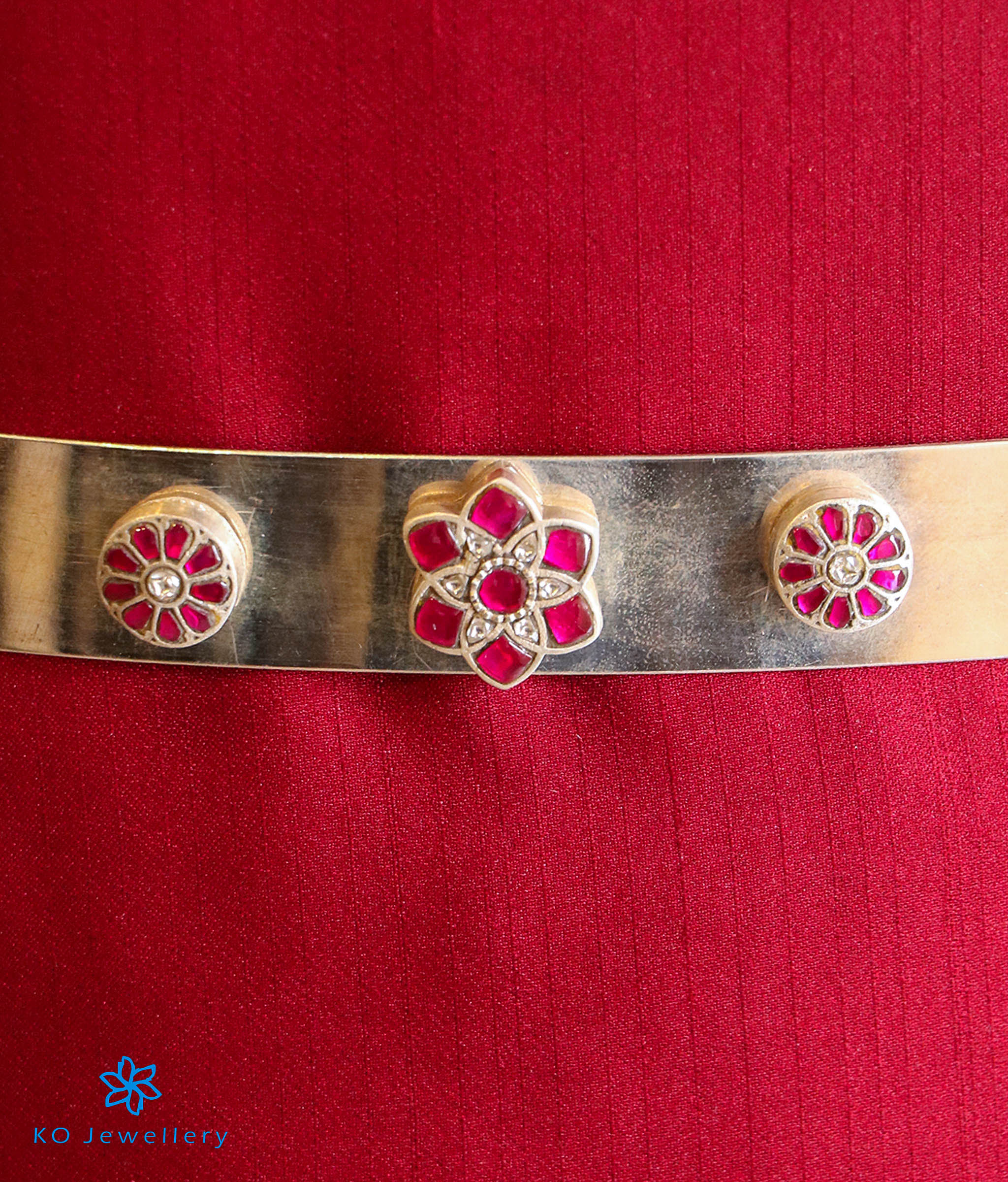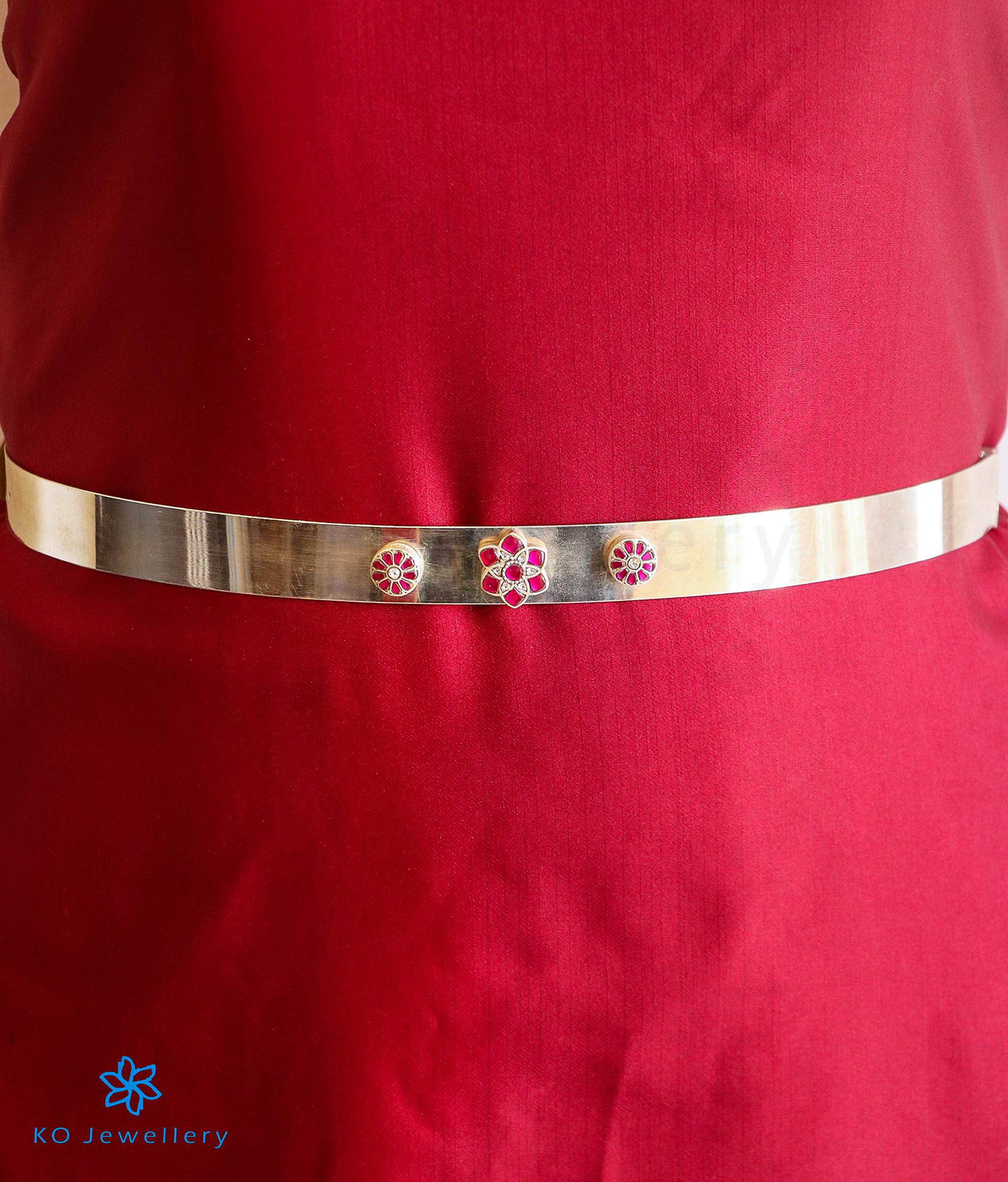 This is a stylish Silver belt that is traditional and contemporary at the same time , it has an adjustable strap and will make a chic accessory . The waist belt has been accentuated with kundan work pendants that add a lovely touch. This is a classic , versatile design that will never go out of favour. Pair it with a traditional outfit or wear it on a evening gown you cant go wrong with this stunner that has a bright silver finish.