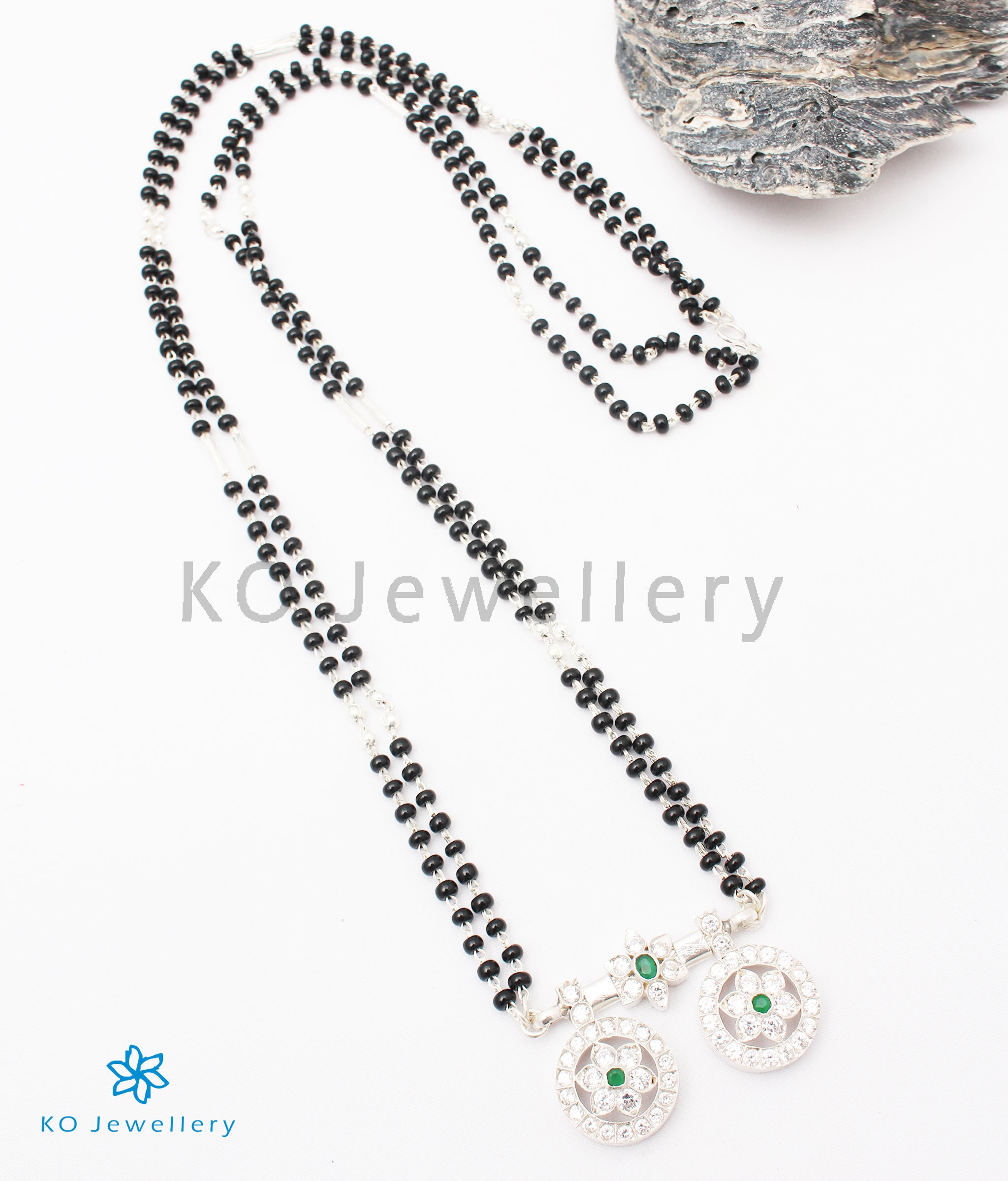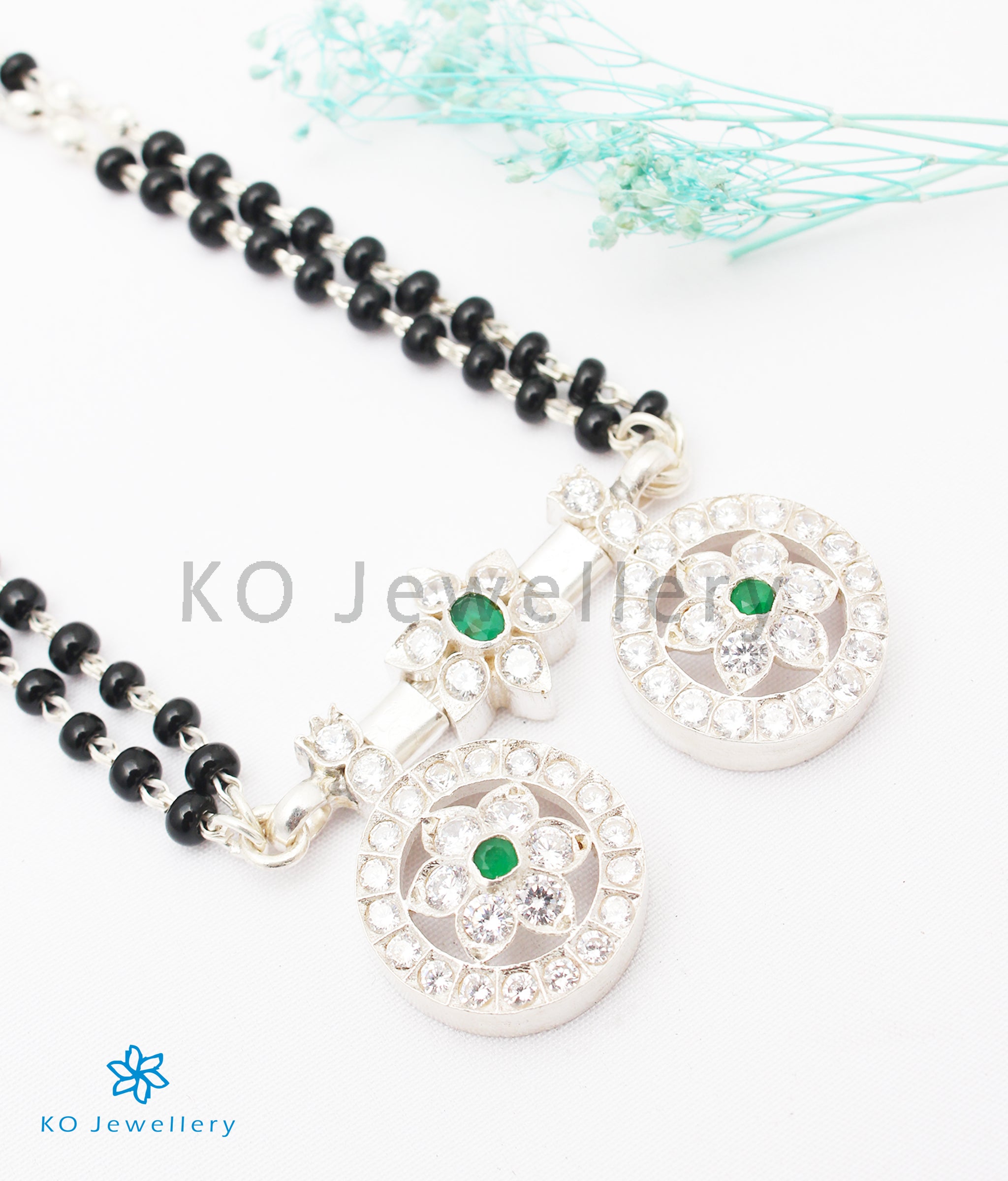 The Saptapadi Silver Mangalsutra Necklace (Green/Bright Silver)