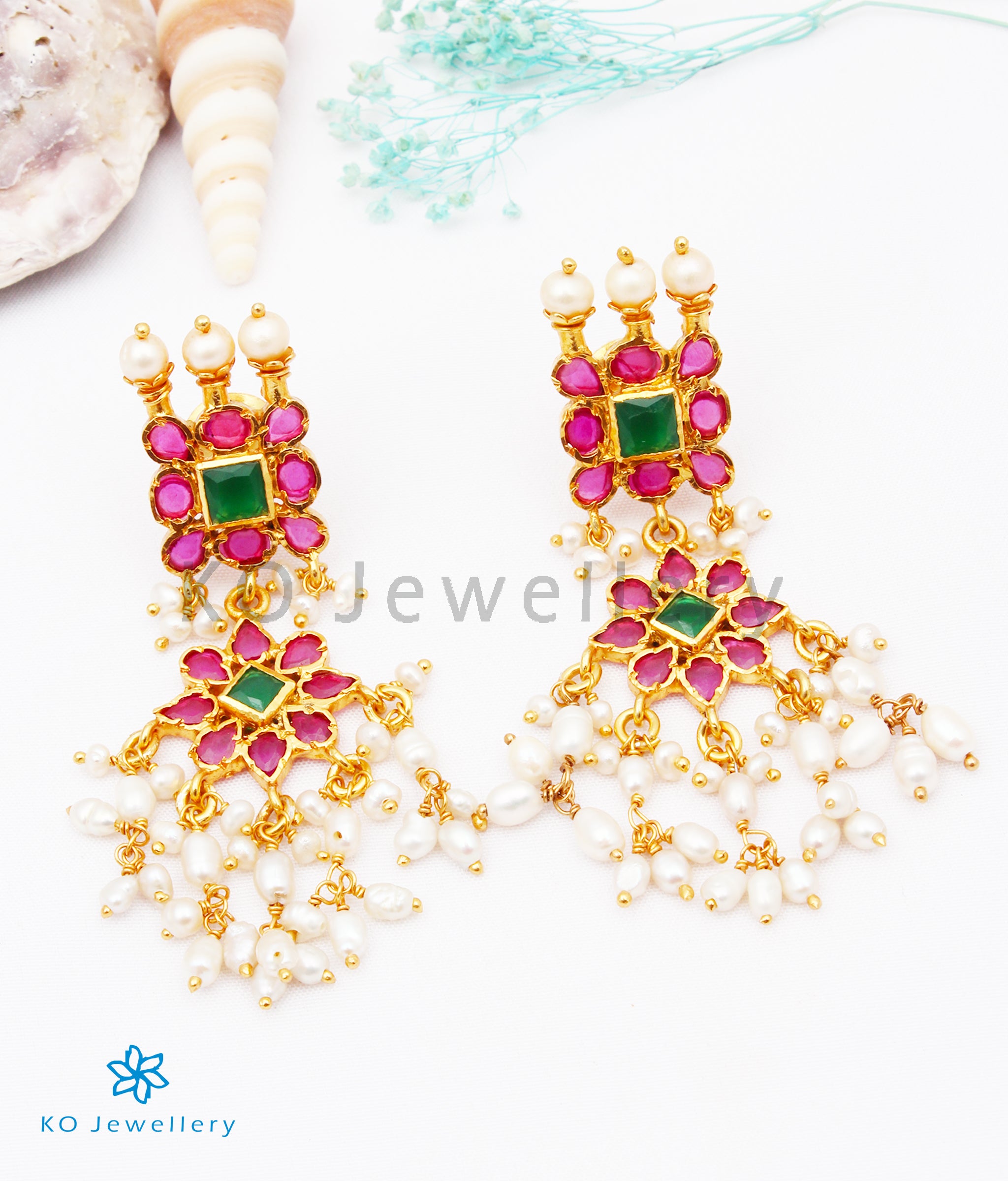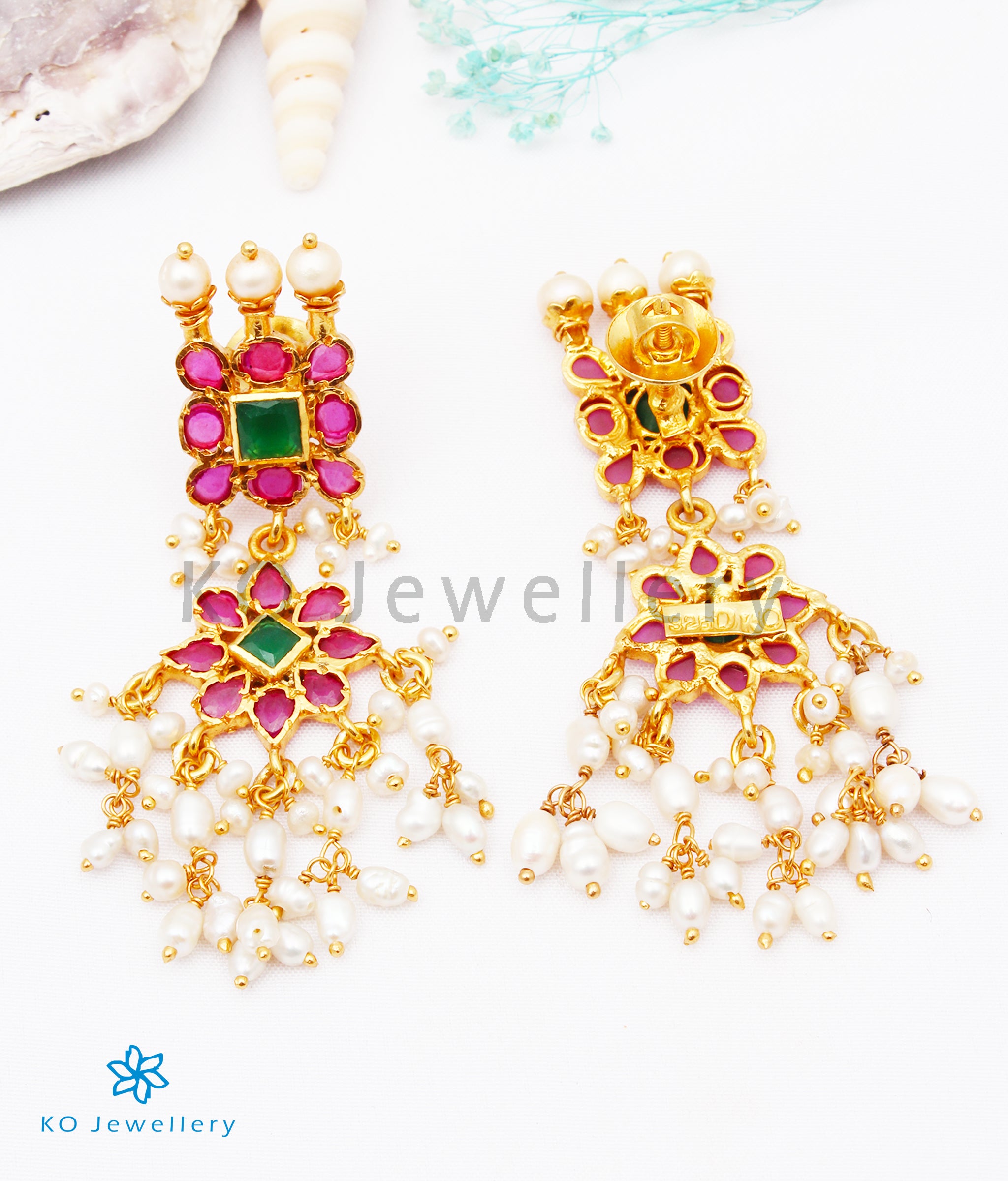 Gemstones used: kempu stone (also known as spinel or Zircon), natural Pearl.