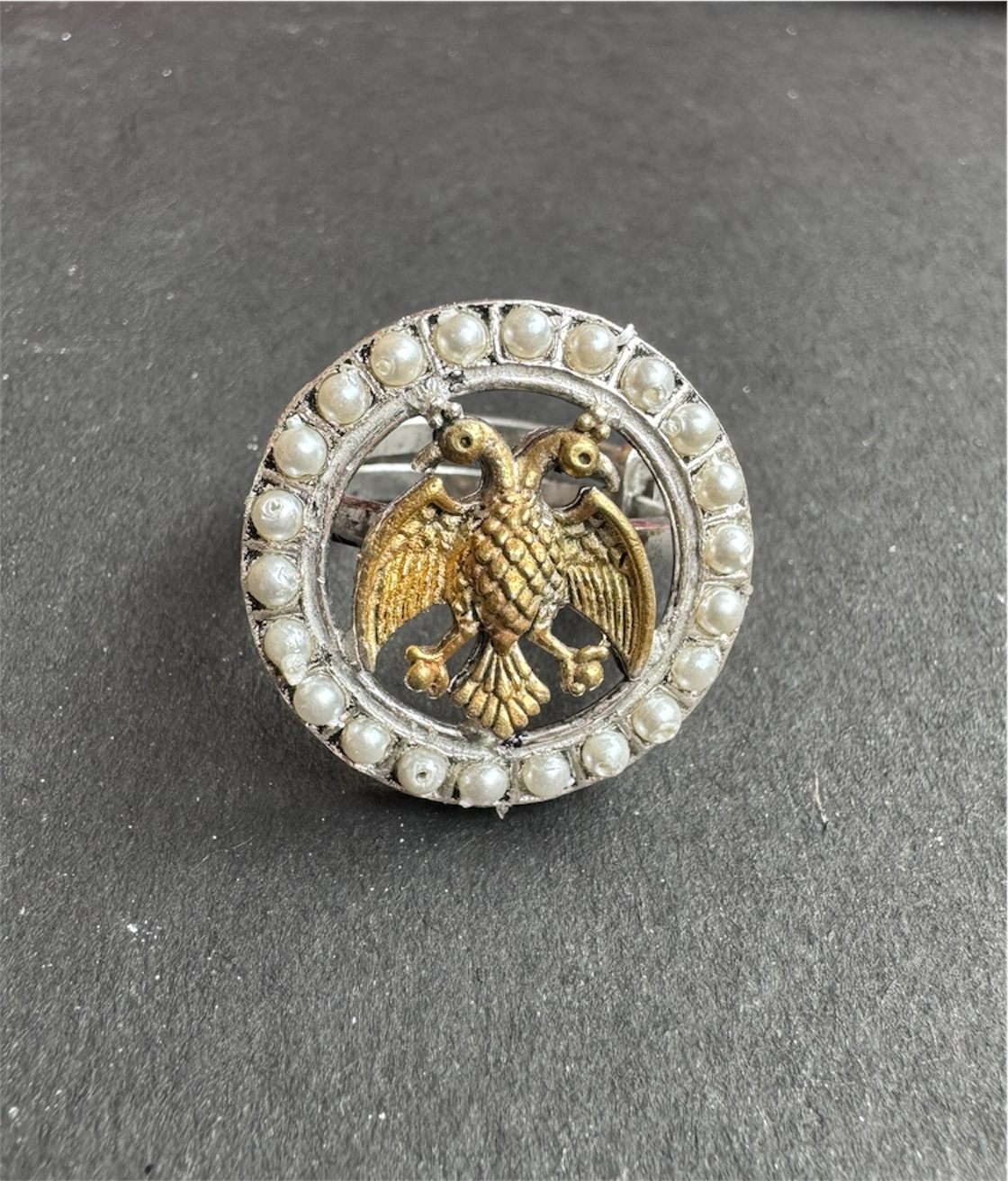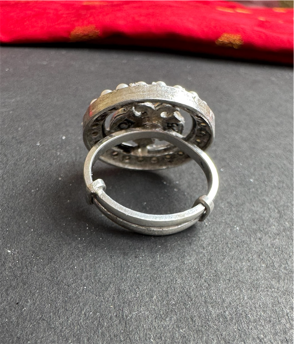 The Rujuta Silver Gandaberunda Adjustable Finger Ring (Pearl- 2 Tone)