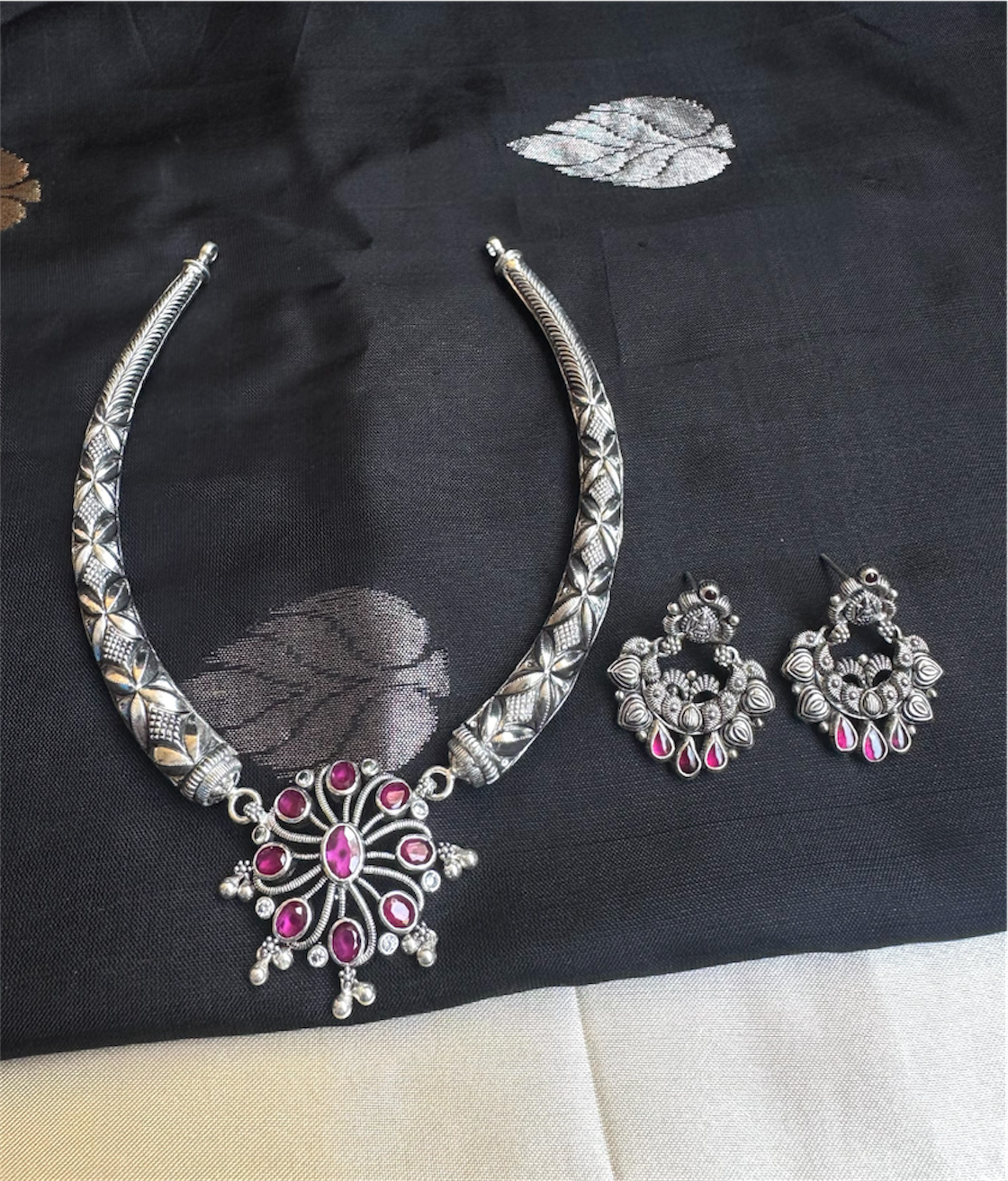 Expertly crafted in 92.5 pure sterling silver, the necklace is finished with a rich oxidised plating that enhances its antique character and highlights the intricate detailing. Every curve and contour is carefully handcrafted by skilled artisans, giving the piece remarkable texture, dimension, and individuality.