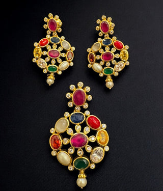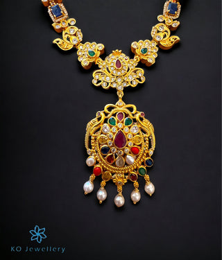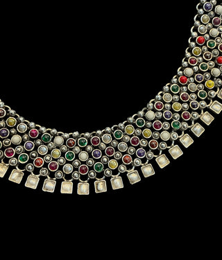 In Indian society, jewellery is not meant for adornment alone, imparting protection to the wearer has been and still is an important function. According to Hindu astrology, life on earth is influenced by the `navagrahas', or nine influencers. Navratna jewellery brings harmony between man and the planets that are believed to control his destiny.Crafted using Sterling Silver 92.5% and a combination of "nine gems" recognised as sacred and said to provide an astrological balance/benefit to the wearer this collection includes a range of handcrafted Navratna Temple Jewellery in unique designs. Crafted using Natural Pearl, Cat's Eye, Garnet, Recreated Coral and Zircon, the pieces in this collection are a feast for the eyes.Read more in our blog..