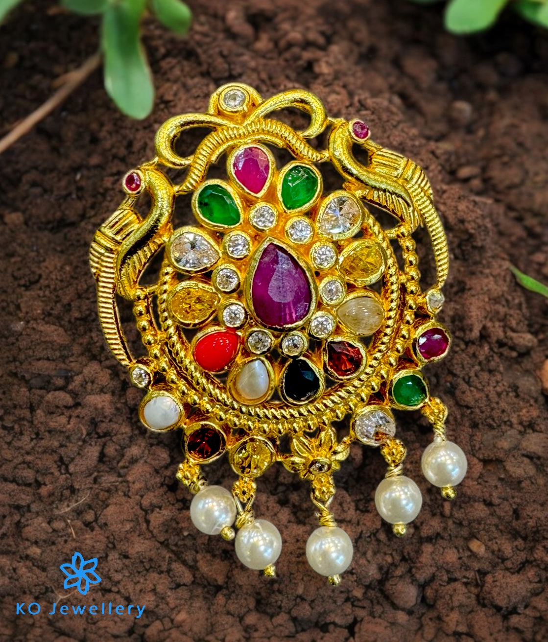The Zahra Silver Navratna Pendant -Buy Navratna Antique Temple silver jewellery online - KO Jewellery
