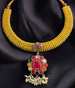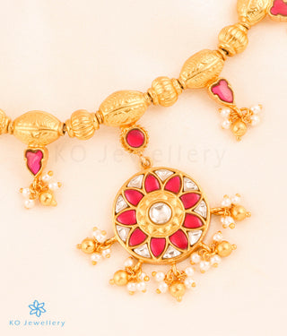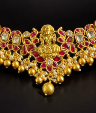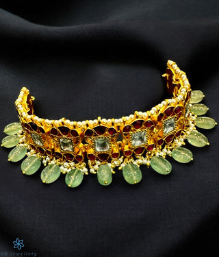 The 'Kundan-jadau' tradition of Indian jewellery is a centuries old technique that is a reminder of the rich cultural heritage of India. Introduced by the Mughals it was perfected by the artisans of Rajastan. Color and motifs were the focal point of this jewellery. Geometric designs are repeated and motifs of creepers, flowers, birds and foliage are used abundantly . Large floral motifs with gem centers are common.The techniques used demand great attention to detail and all pieces are completely handmade.