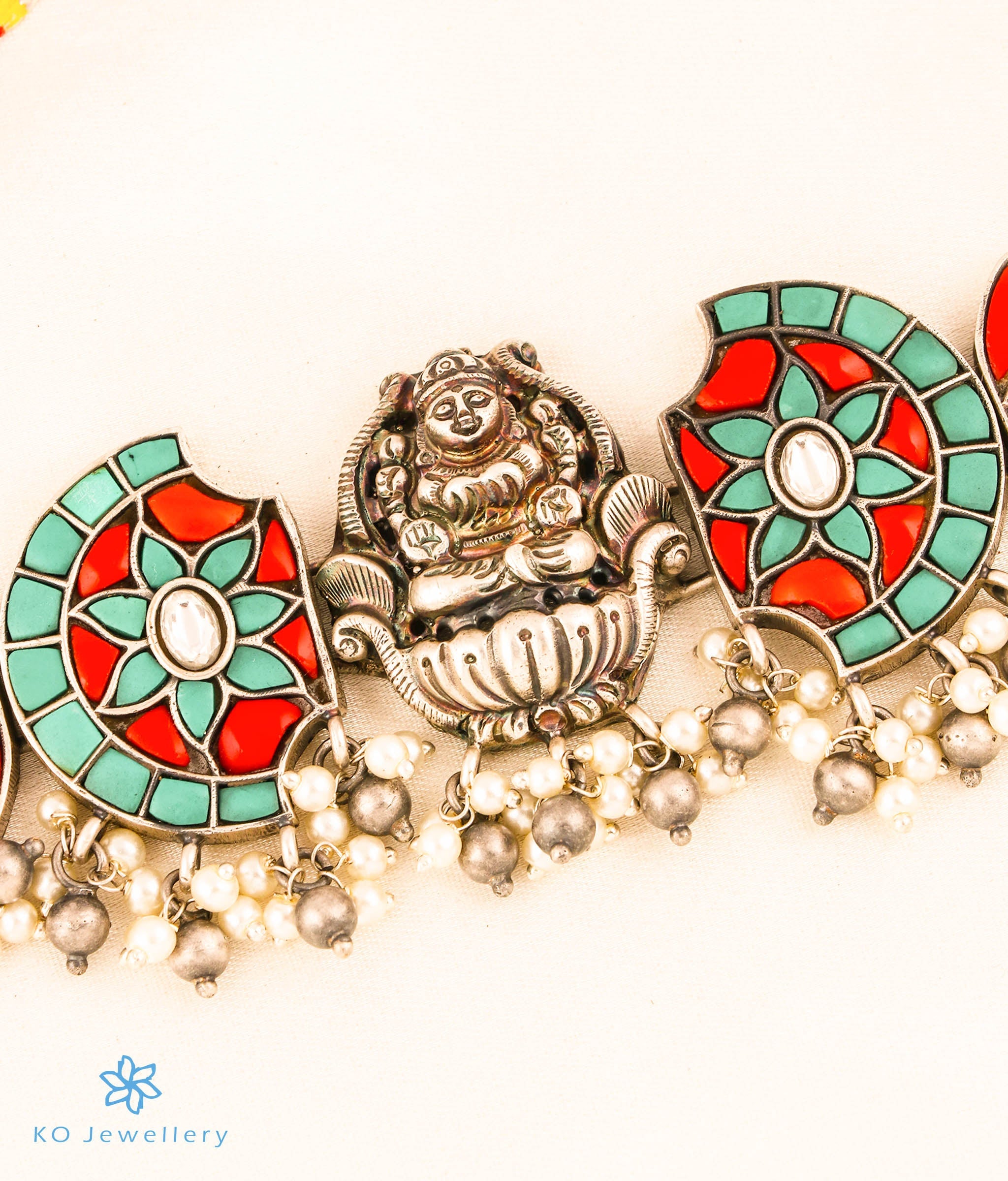 The Bhadrika Silver Lakshmi Choker Necklace & Earrings