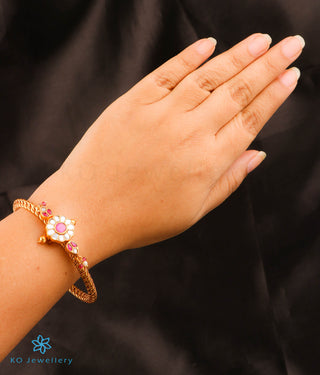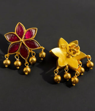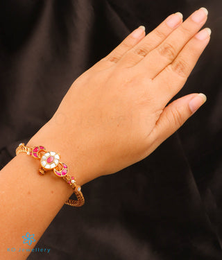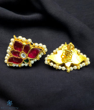 The 'Kundan-jadau' tradition of Indian jewellery is a centuries old technique that is a reminder of the rich cultural heritage of India. Introduced by the Mughals it was perfected by the artisans of Rajastan. Color and motifs were the focal point of this jewellery. Geometric designs are repeated and motifs of creepers, flowers, birds and foliage are used abundantly . Large floral motifs with gem centers are common.The techniques used demand great attention to detail and all pieces are completely handmade.