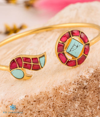 The 'Kundan-jadau' tradition of Indian jewellery is a centuries old technique that is a reminder of the rich cultural heritage of India. Introduced by the Mughals it was perfected by the artisans of Rajastan. Color and motifs were the focal point of this jewellery. Geometric designs are repeated and motifs of creepers, flowers, birds and foliage are used abundantly . Large floral motifs with gem centers are common.The techniques used demand great attention to detail and all pieces are completely handmade.