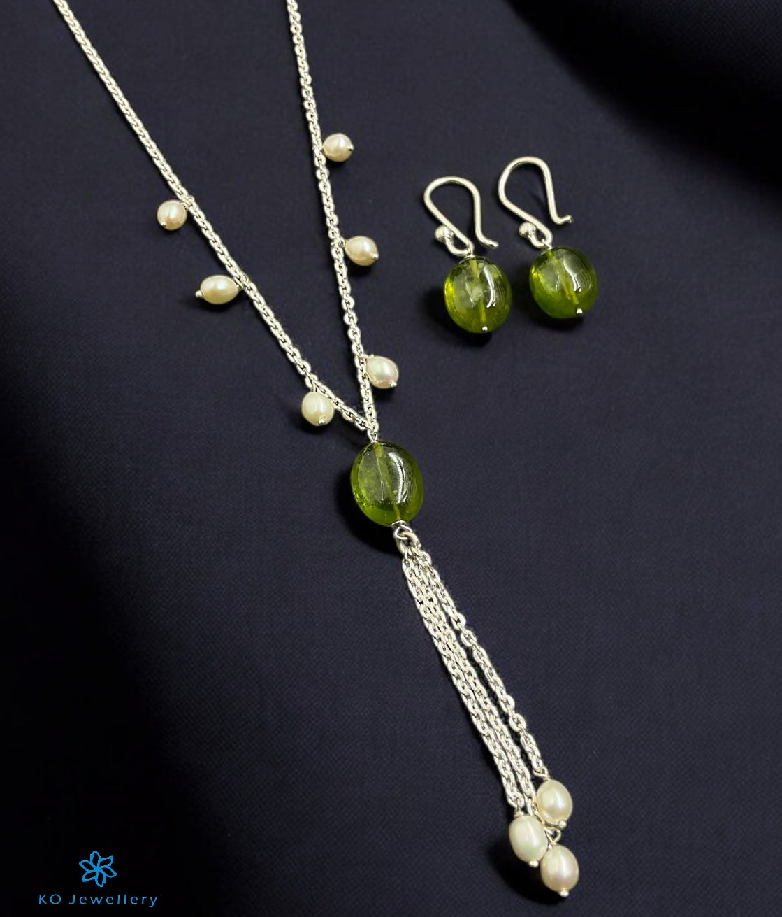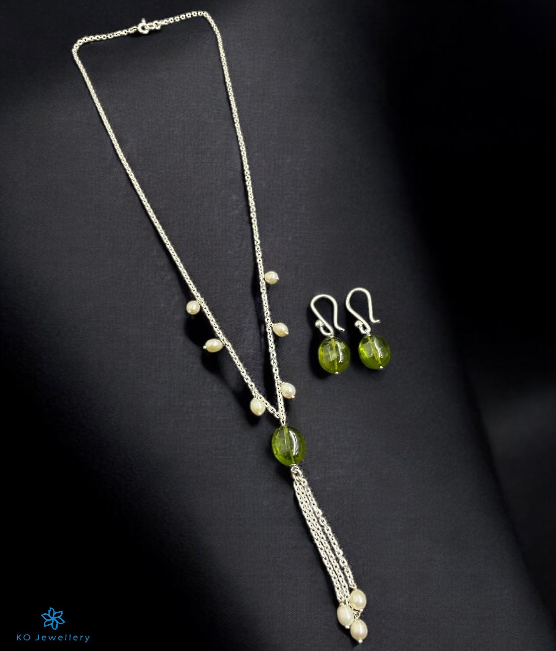 The Idaya Lariat Silver Pearl & Gemstone Necklace/ Earrings