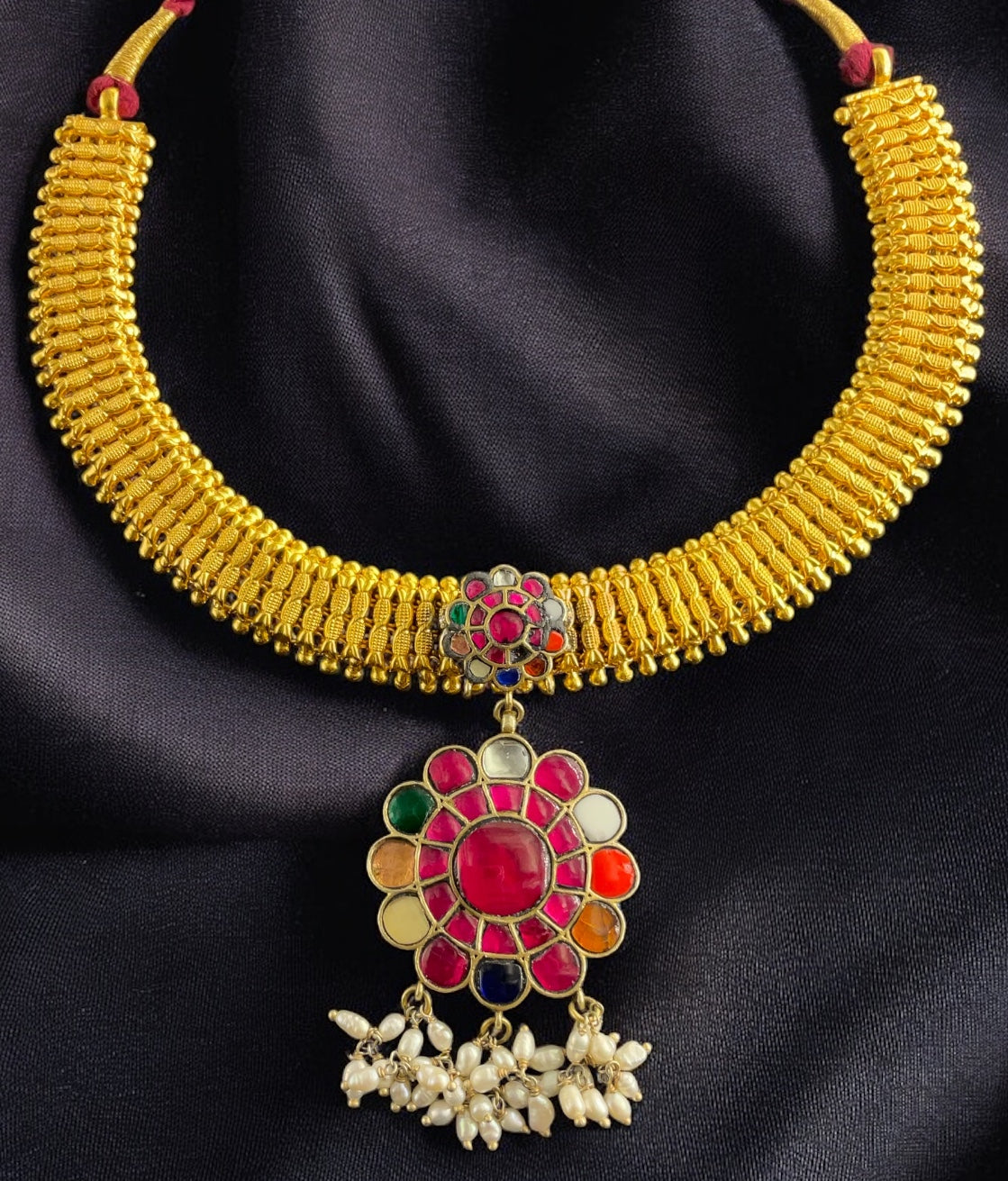 Drawing from the opulence of Mughal jewelry, this necklace showcases the finest techniques in jewelry-making, where every stone and motif is meticulously placed to achieve a perfect balance of form and artistry. Whether worn for a special occasion or as a statement piece, this necklace is a celebration of India’s rich cultural heritage and the sophistication of its traditional jewelry-making