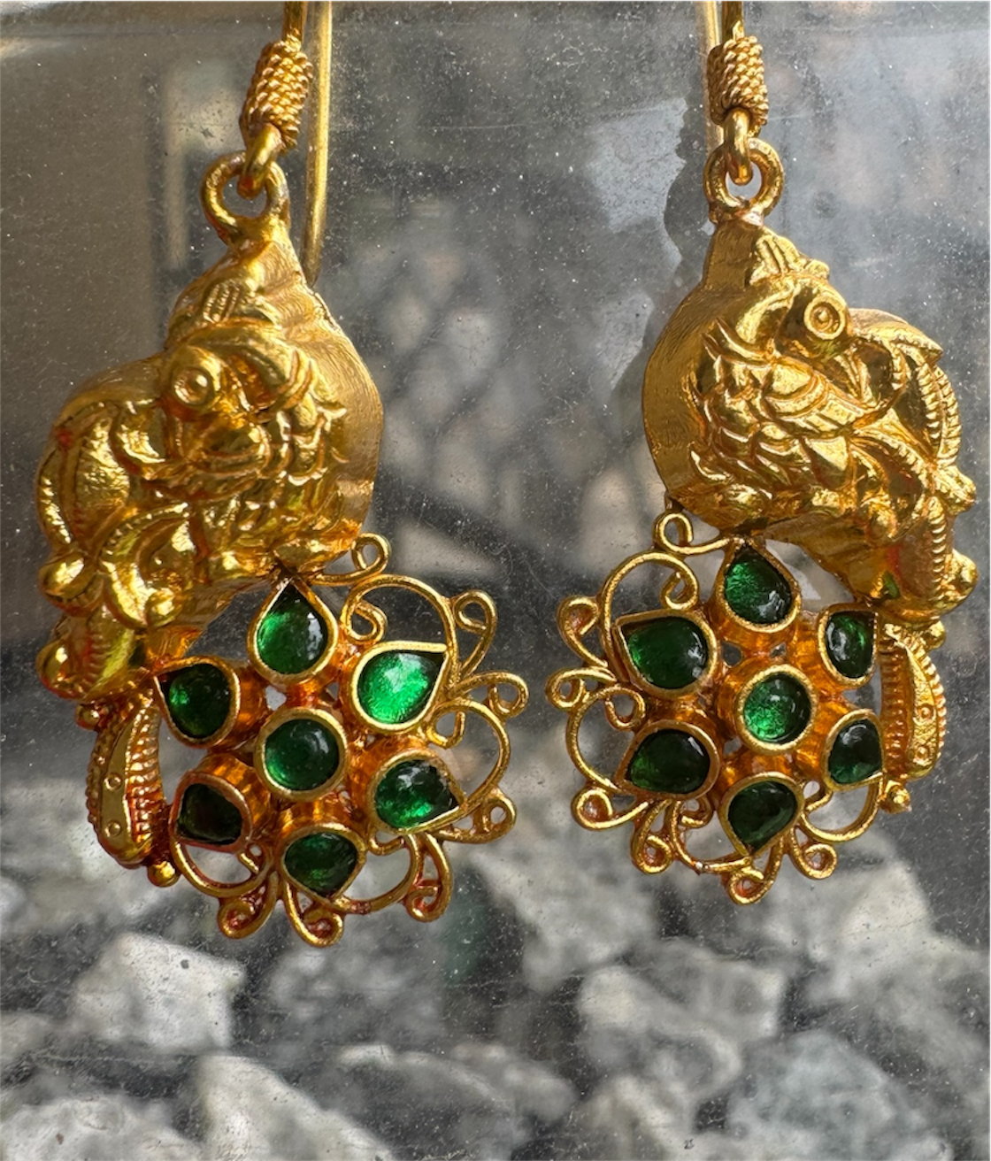 The Neelanshi Silver Peacock Green Kemp Earrings