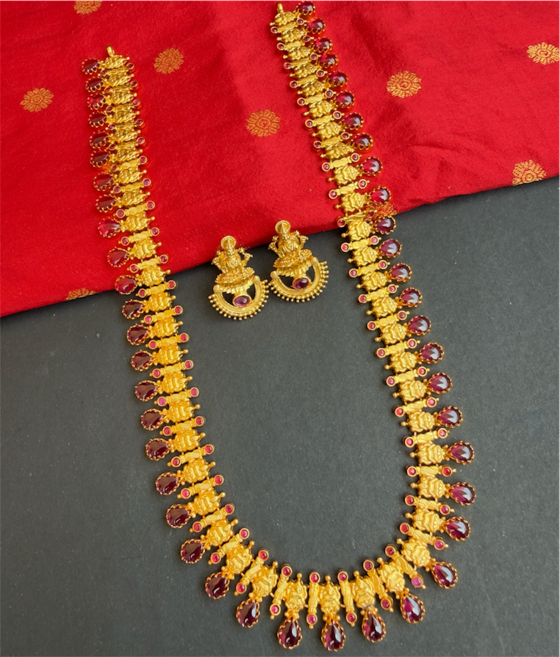The Subhadra Silver Kemp Lakshmi Necklace & Earrings - Buy Silver necklace in Pure Silver from trusted jeweller - KO Jewellery