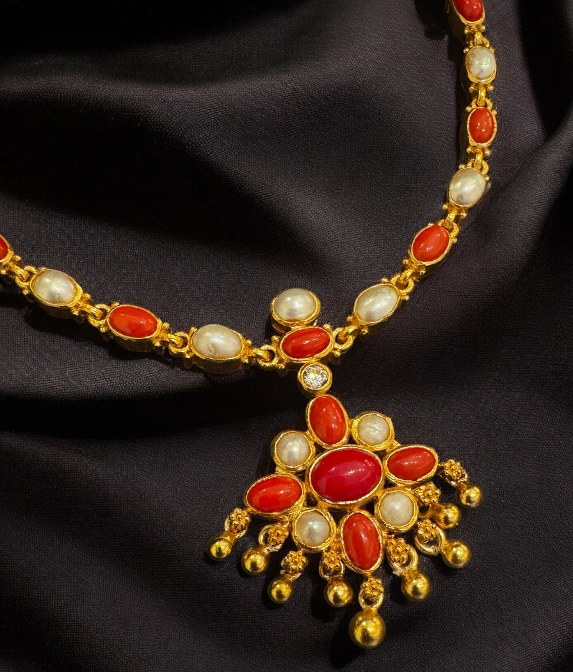 The Vedya Silver Pearl & Coral Necklace & Earrings