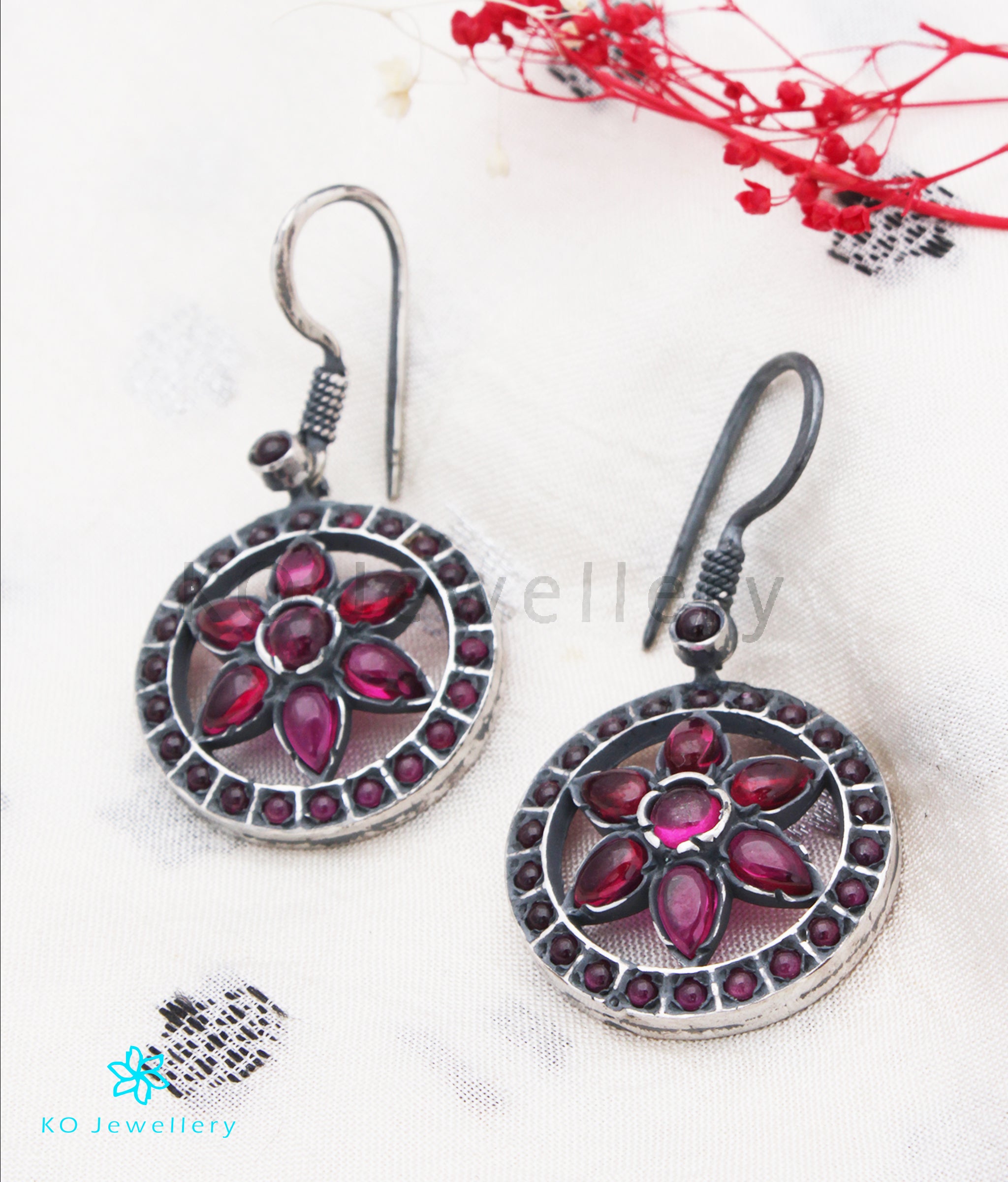 The Samanvaya Silver Earrings (Red/Oxidised)