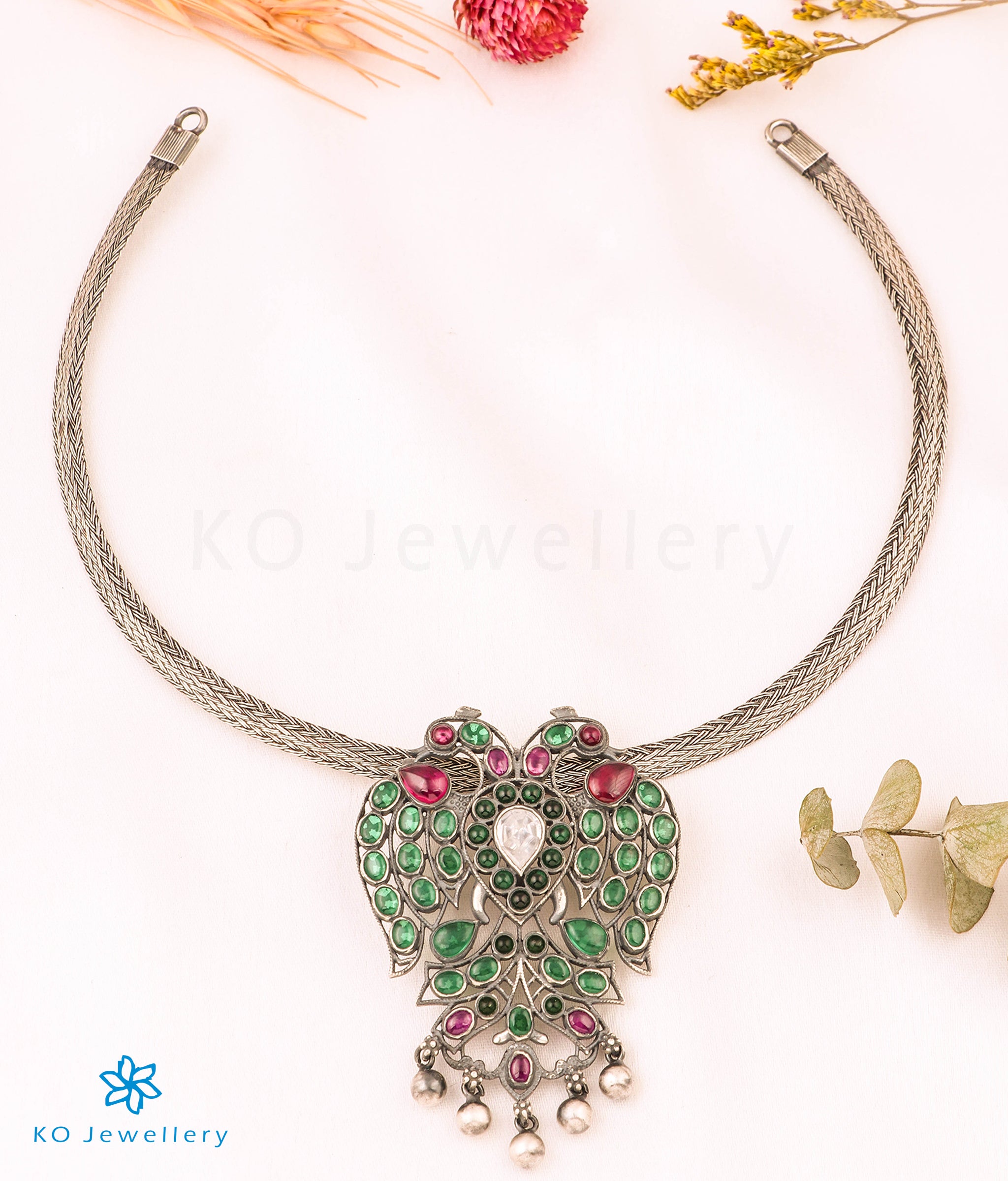 Gandaberunda Silver Necklace (Oxidised)-Buy Temple Jewellery Online - KO Jewellery