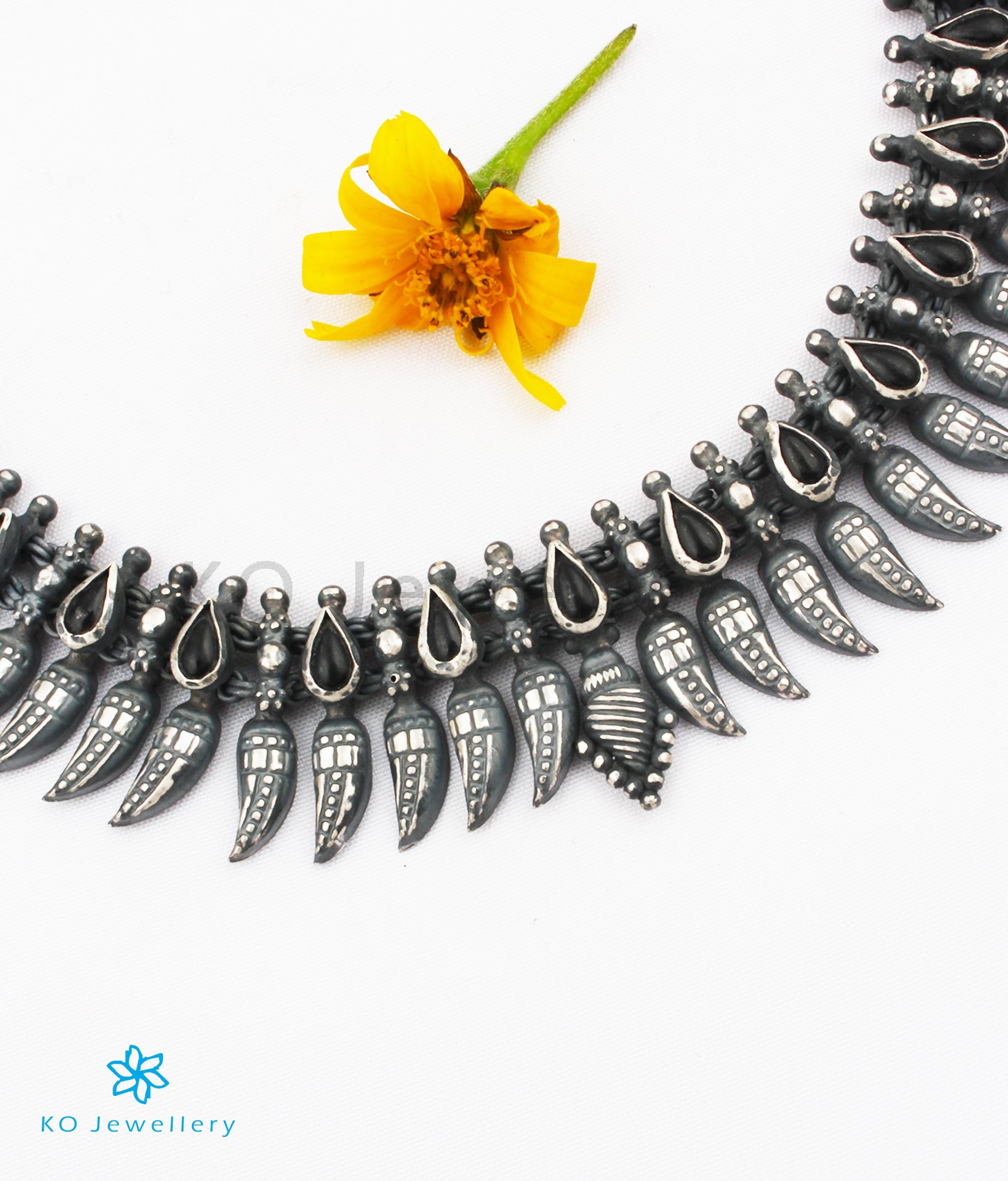 The Malligai Arumbumalai Antique Silver Necklace/Earrings (Blue)