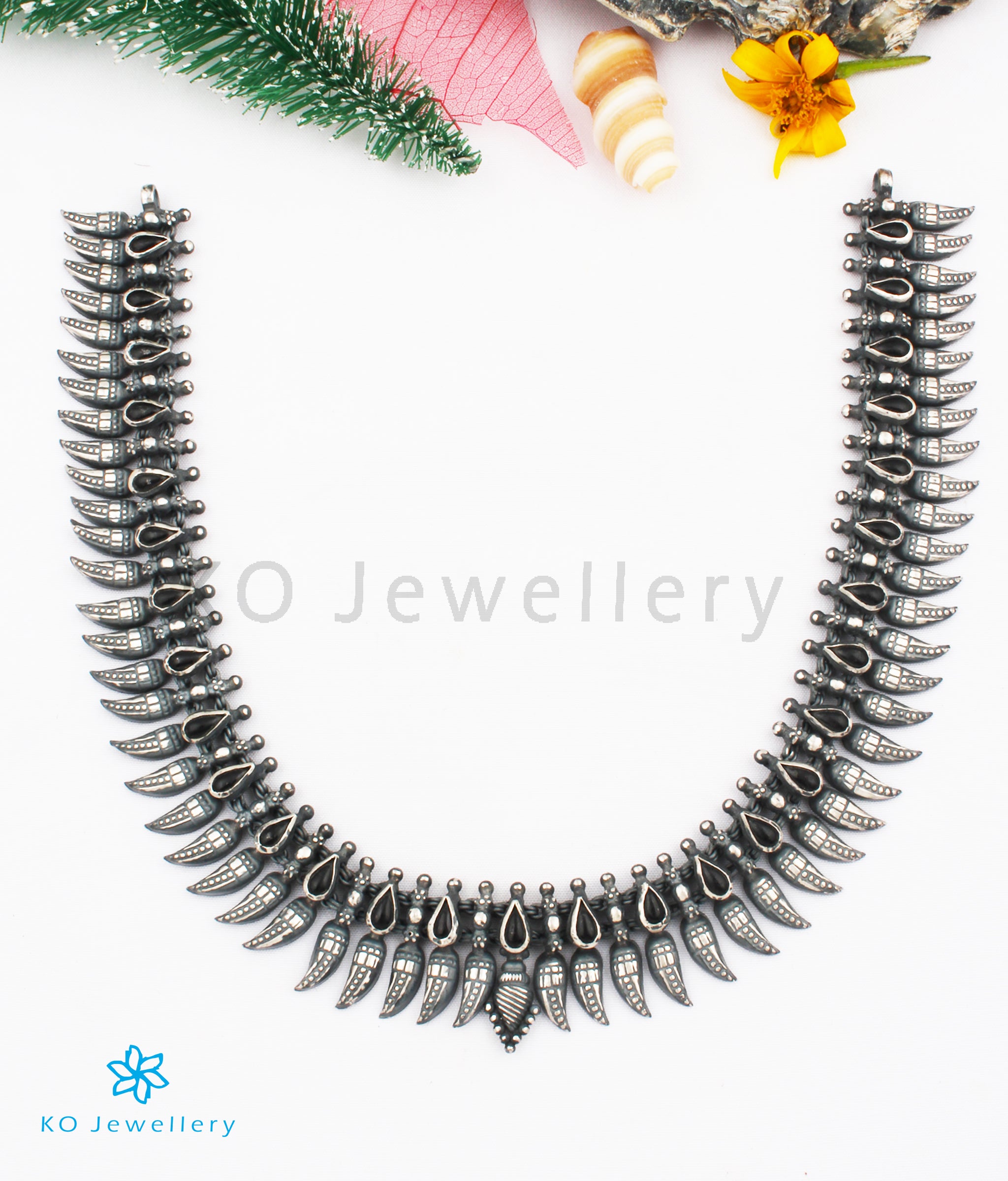 The Malligai Arumbumalai Antique Silver Necklace/Jhumkas(Blue)