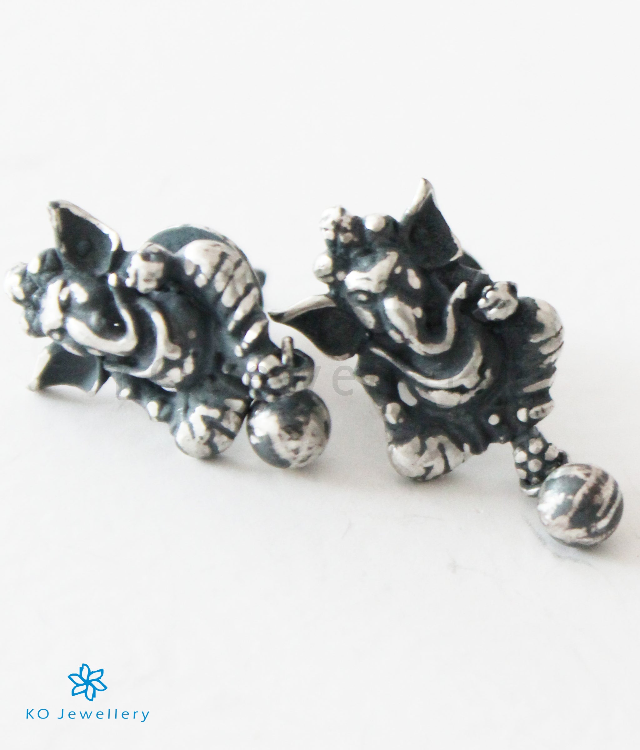 The Mandaka Silver Ganesha Ear-studs (Oxidised)