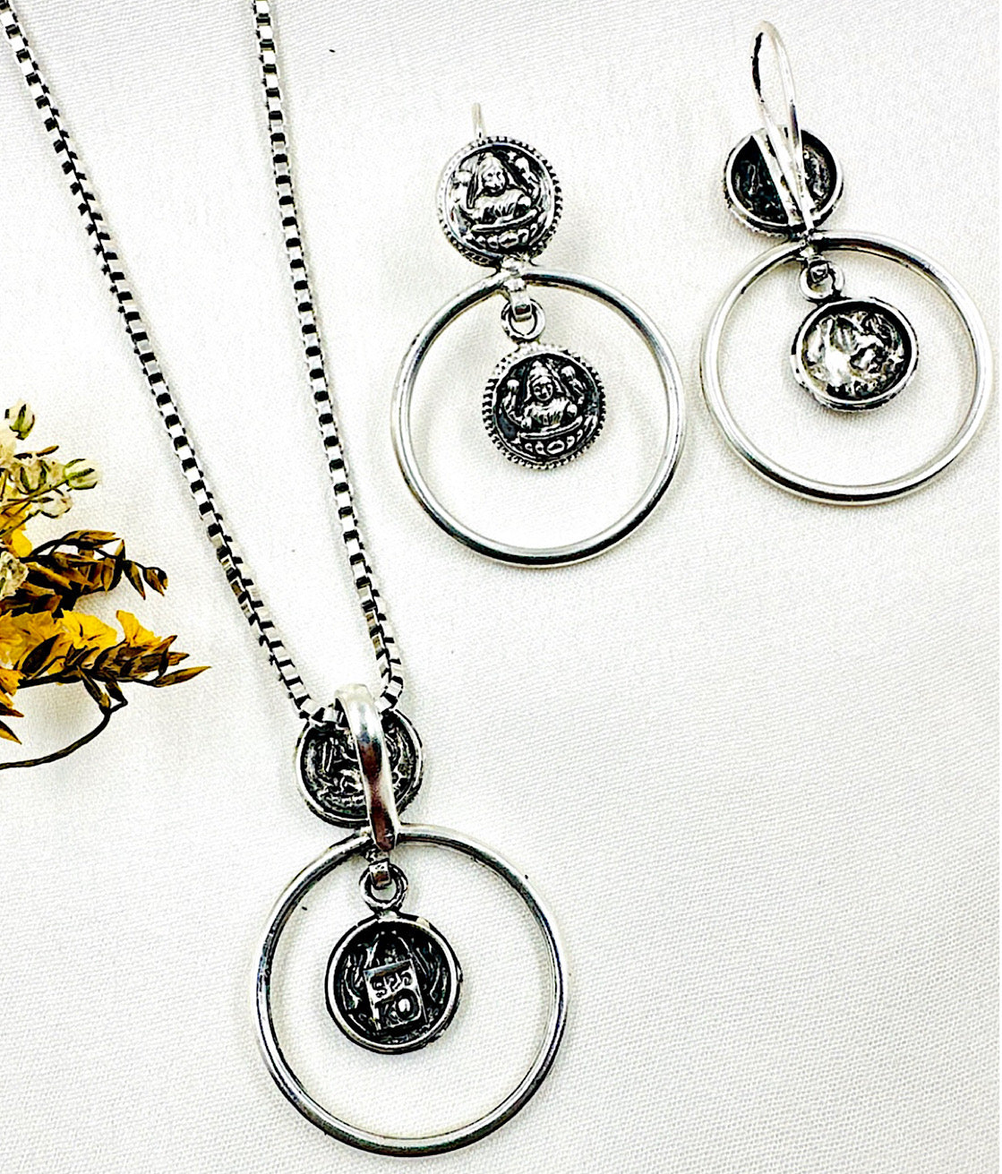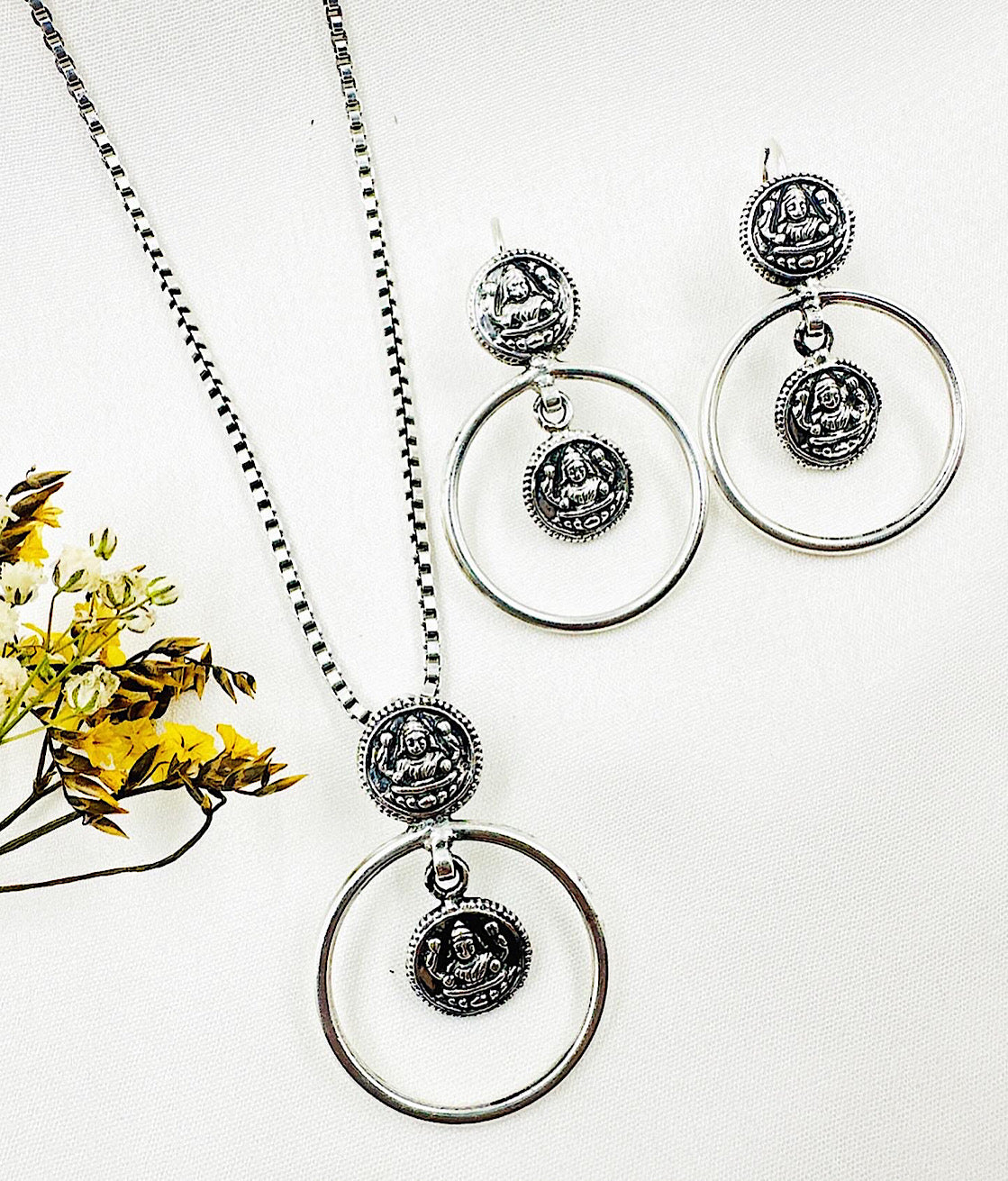 The Silver Lakshmi Pendant Set (Hook/Oxidised)