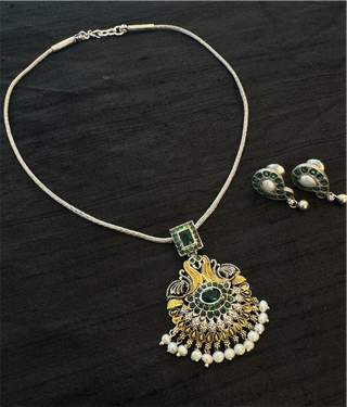 Peacock Motif - an Indian design favorite. Peacock is not just the national bird of India, it also finds many references in Indian culture. Here you'll find a huge range of silver and gold plated earrings, jhumkas, necklaces, bangles in this popular Indian motif.