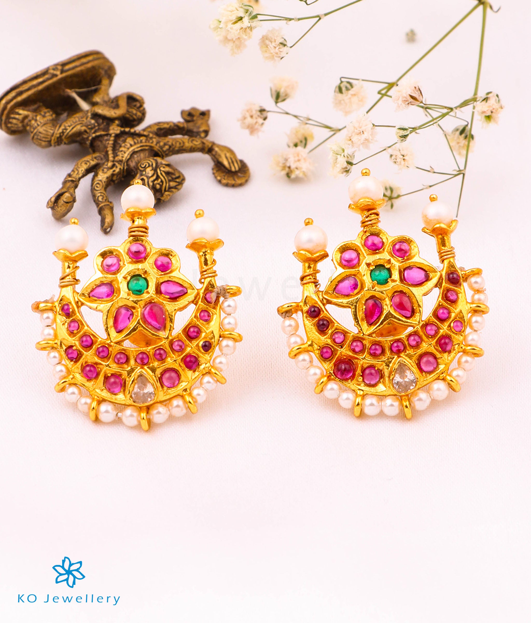 Gemstones used: kempu stone (also known as spinel or Zircon), natural Pearl.