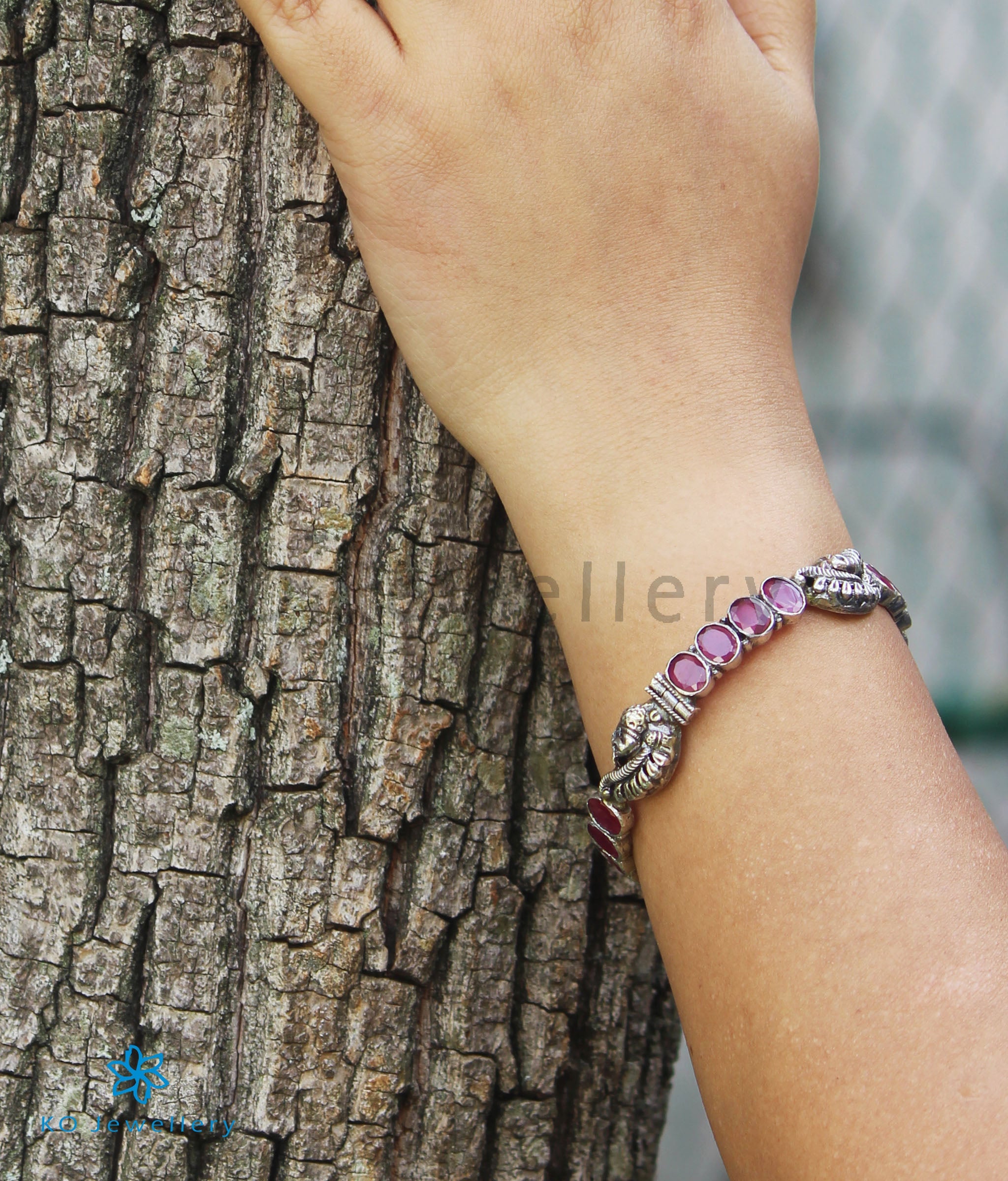 The Anulasya Silver Kemp Peacock Bracelet(Oxidised)-Buy Silver Bangle Jewellery in Sterling Silver (92.5%). - KO Jewellery