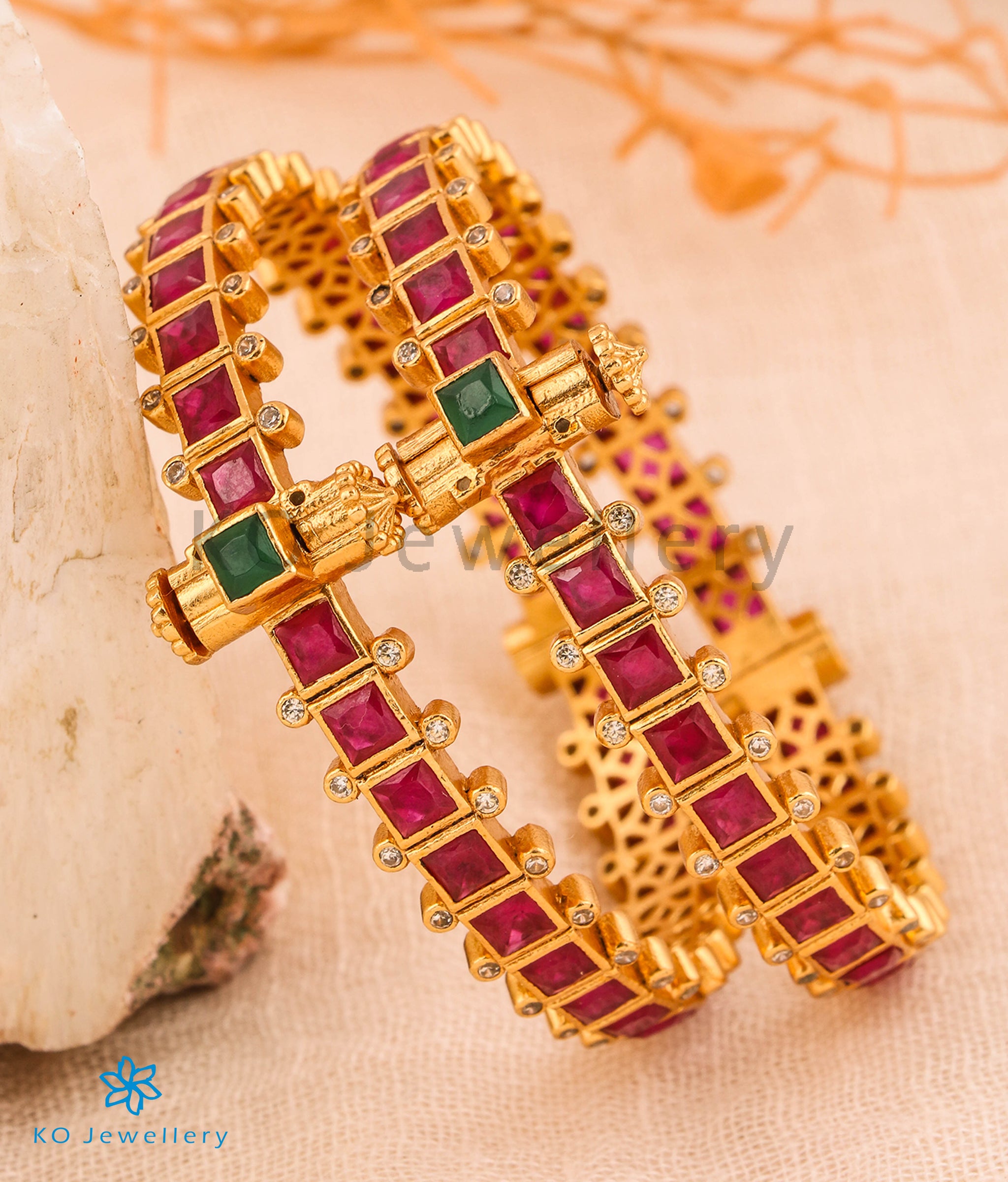 Outshine everyone with this gorgeous bracelet. Beautiful square shaped kempu stones are fringed with tiny AAA+ Quality Cubic Zirconia in Sterling Silver (92.5%) to create this exclusive piece. This seamlessly handcrafted bracelet can be opened to gently fit your hand. You could choose to buy it single or in a pair. The price listed is for a single bangle.