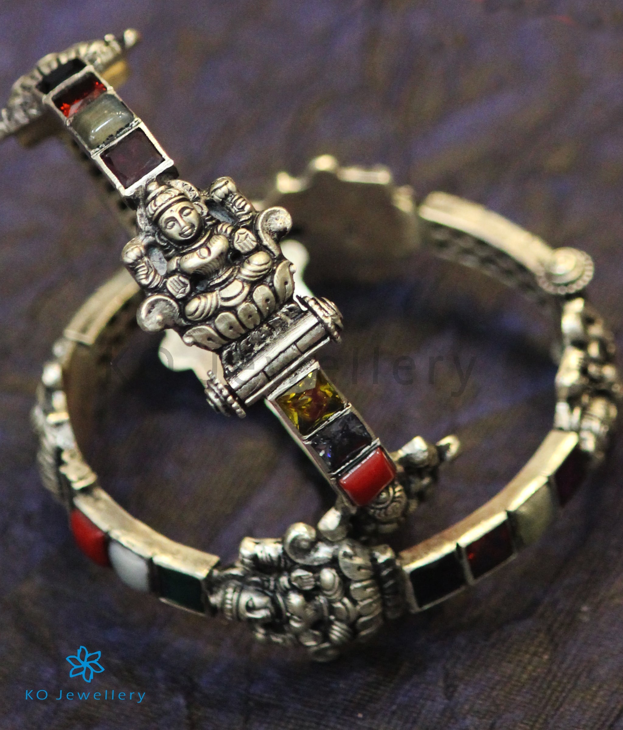 The Shri Silver Navratna Bracelet (Oxidised/Size 2.2/2.4/2.6/2.8)