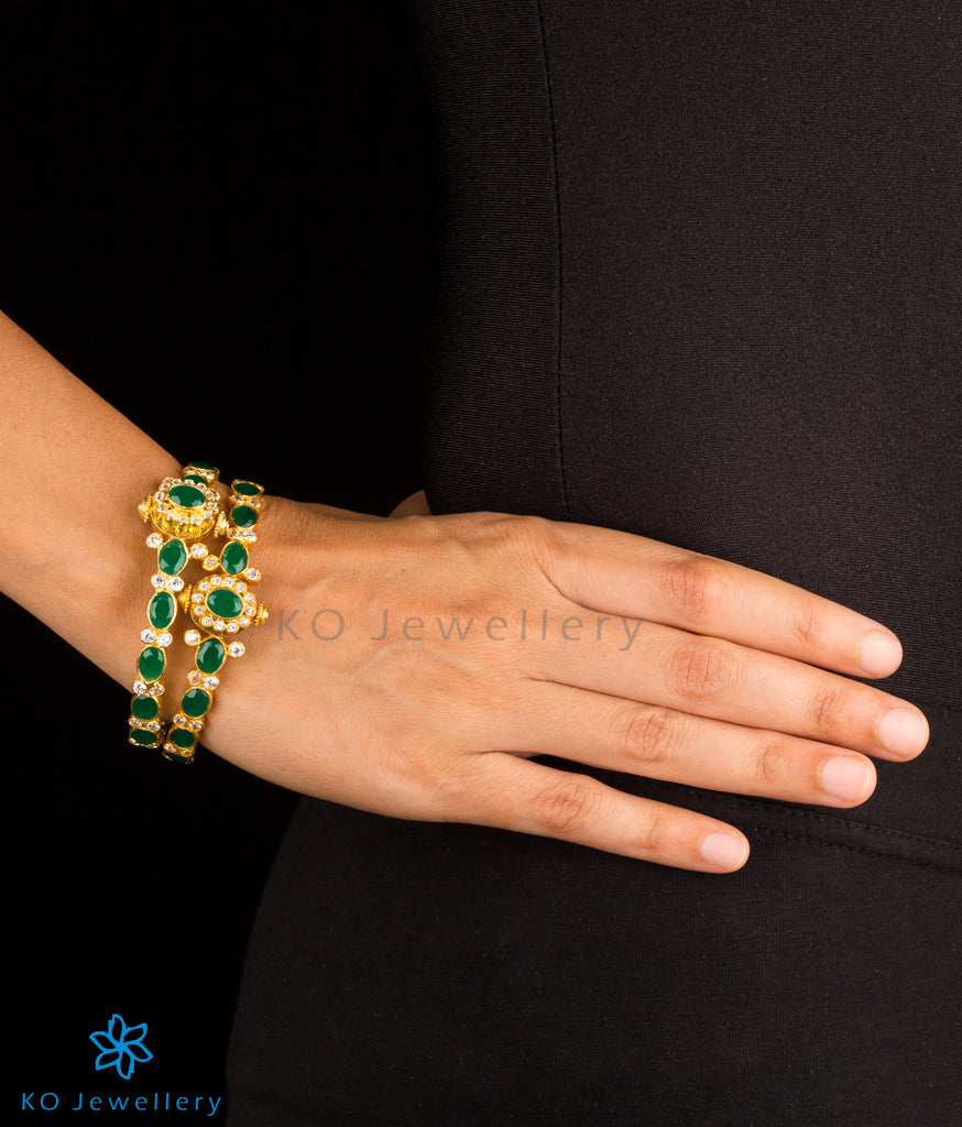 The Harini Silver Kemp Bracelet (Green/Size/2.2/2.4/2.6/2.8)